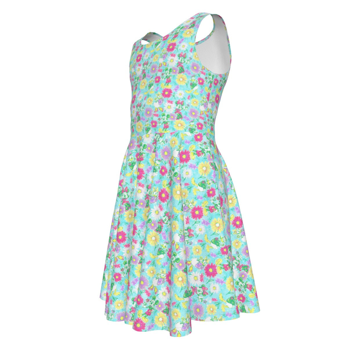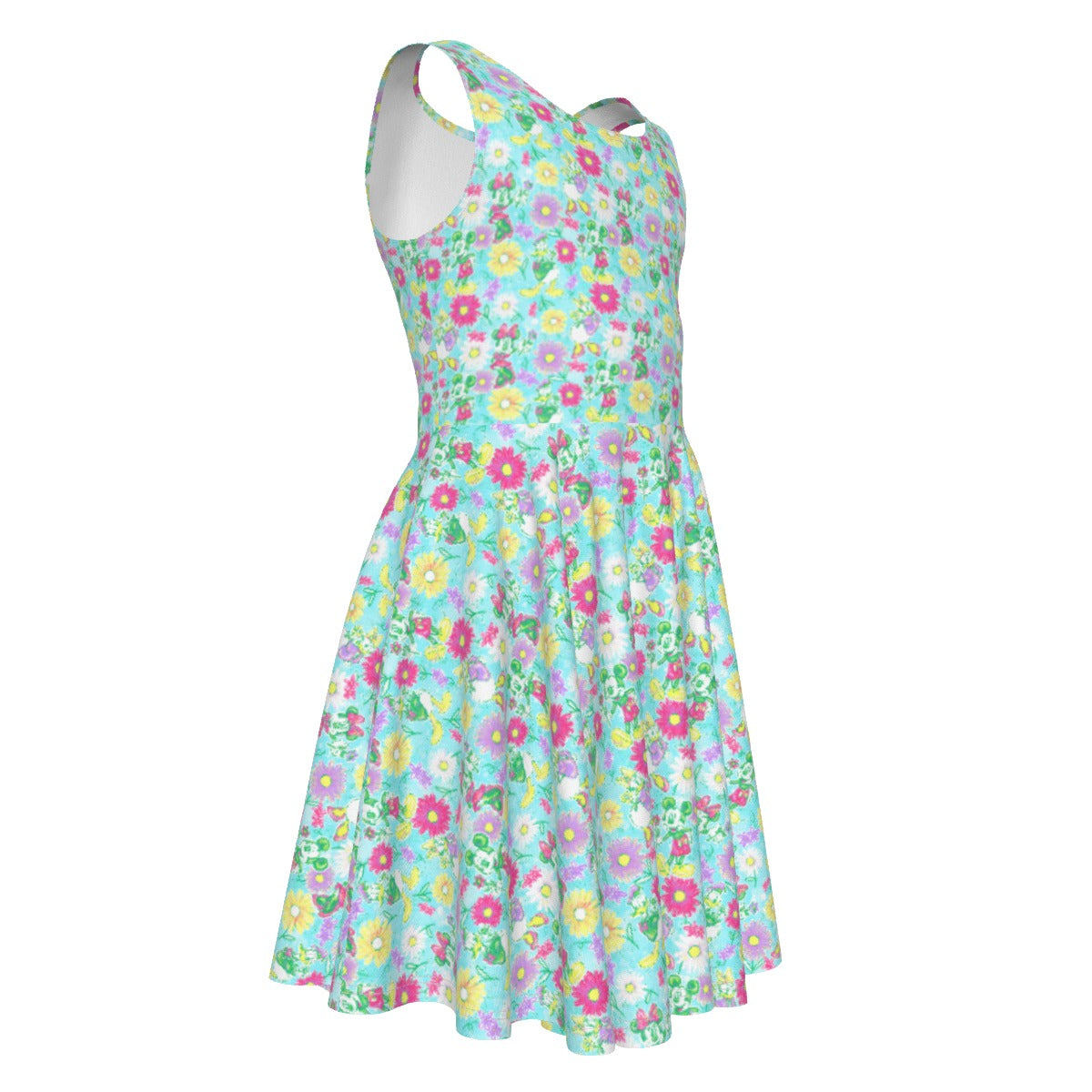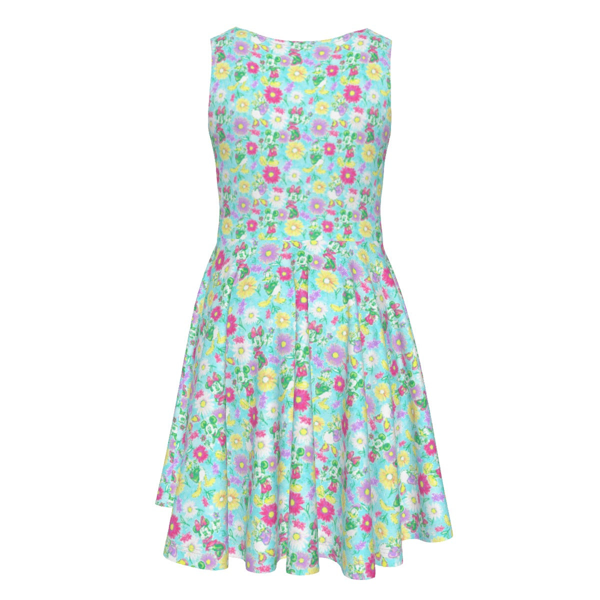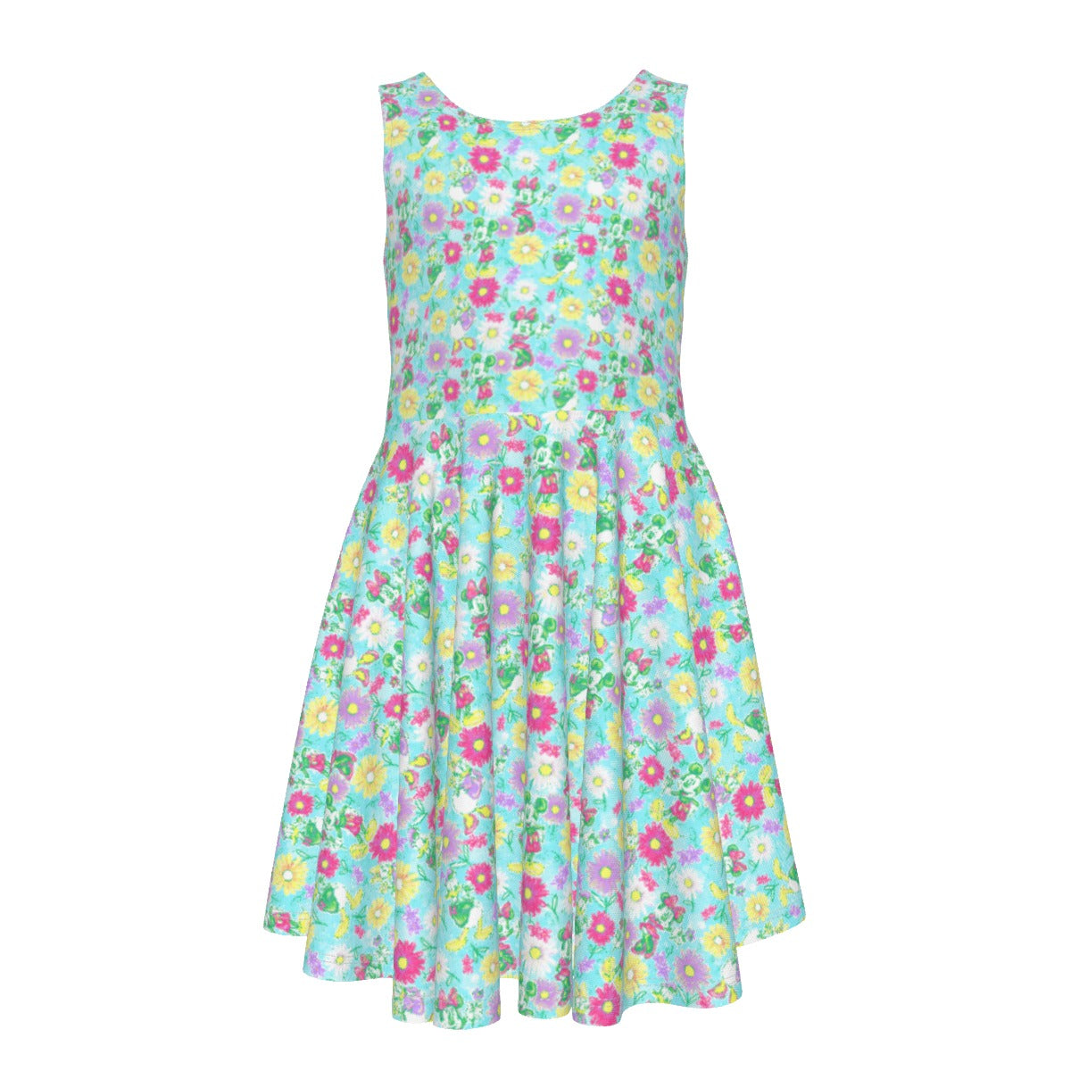 Neon Spring Floral Friendsends - Kid's Sleeveless Skater Dress