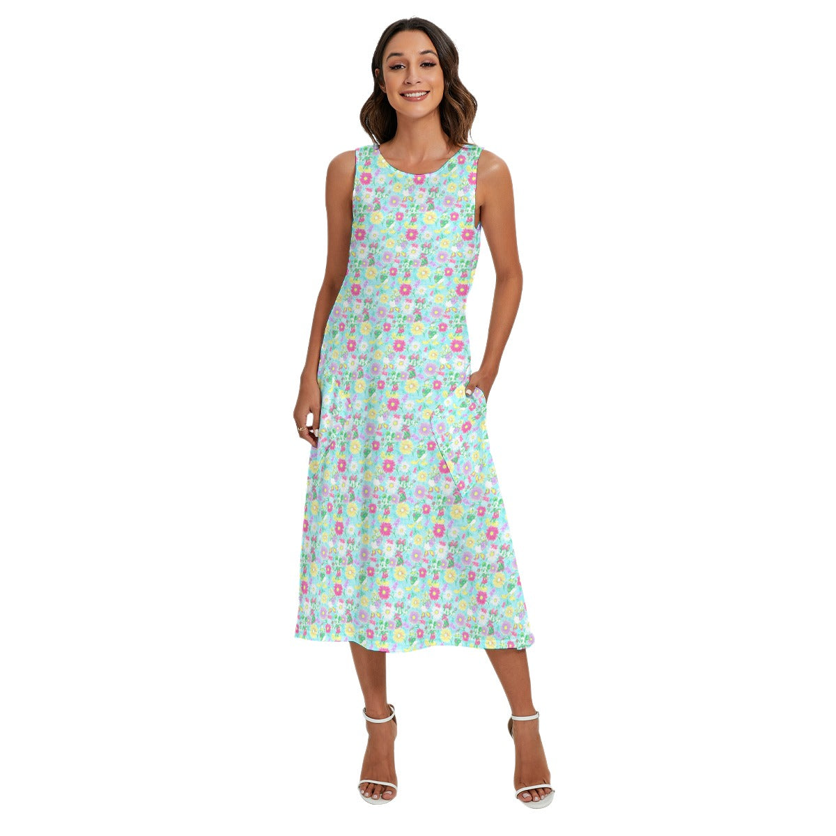 Clean lines, soft fabric, and standout style — our Women’s Diagonal Pocket Midi Dress is equal parts comfort and everyday charm. With a sleeveless cut, classic crew neckline, and relaxed A-line shape, it flatters without clinging and moves easily from day to night.