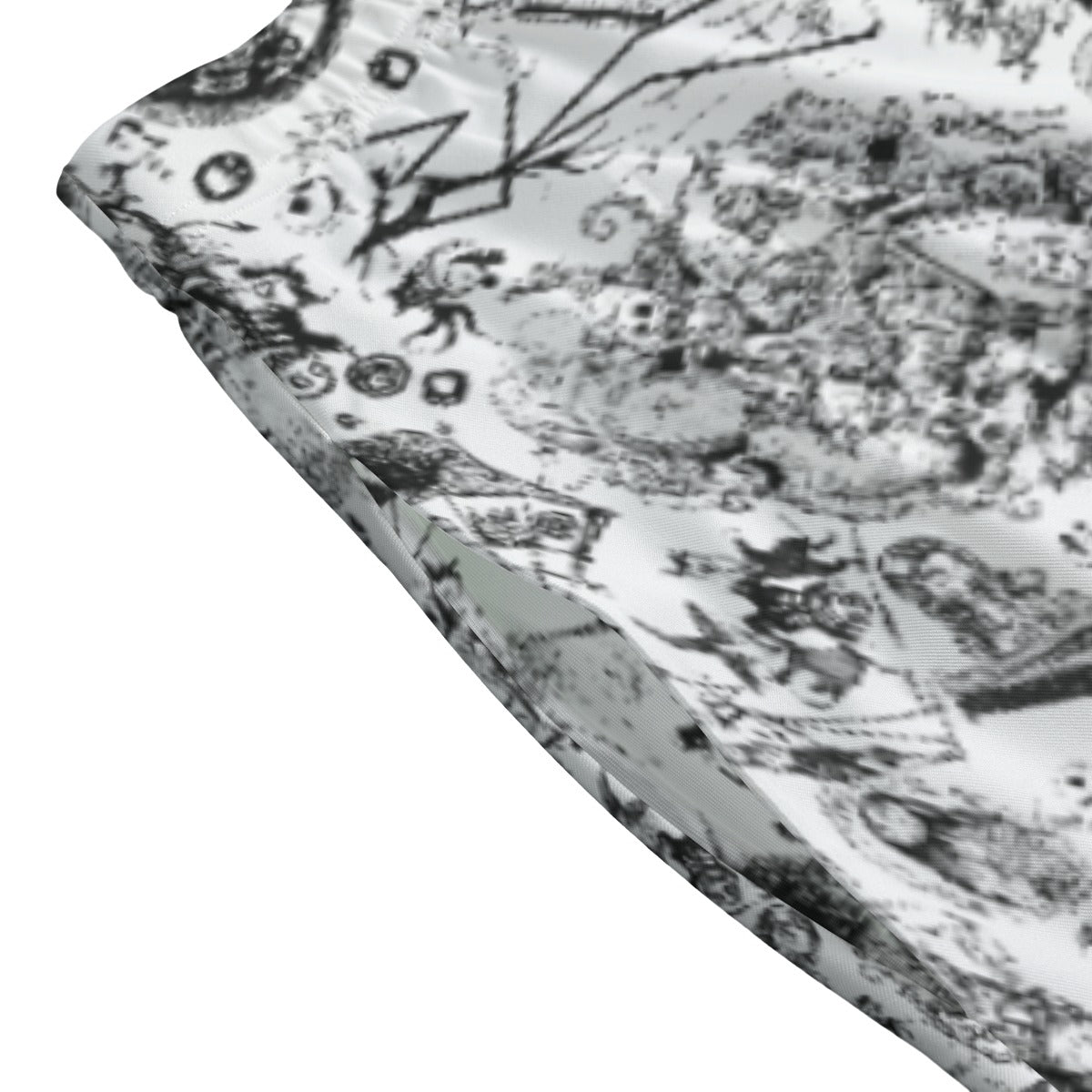 Capture whimsical eerie charm with this intricate monochrome design featuring hand-drawn sketches of spooky skeletons, stitched friends, ghostly pups, and mischievous tricksters. With its detailed illustrations on a crisp white background, it’s perfect for anyone who loves hauntingly playful Halloween vibes.