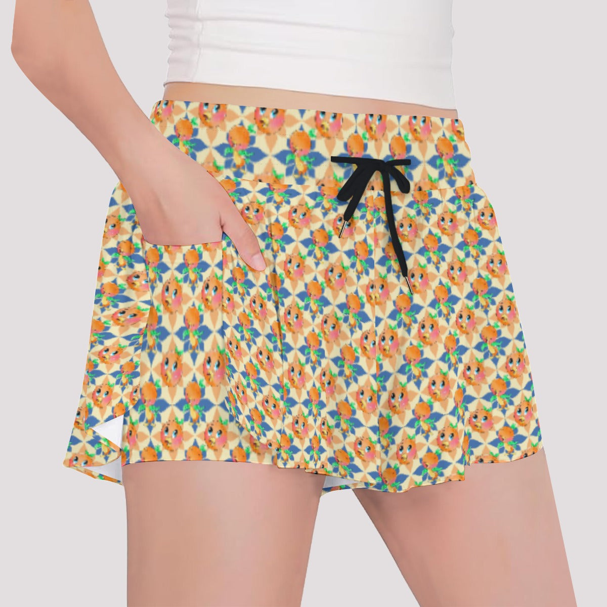 Retro Citrus Play - Girls’ Flowy Pocket Shorts