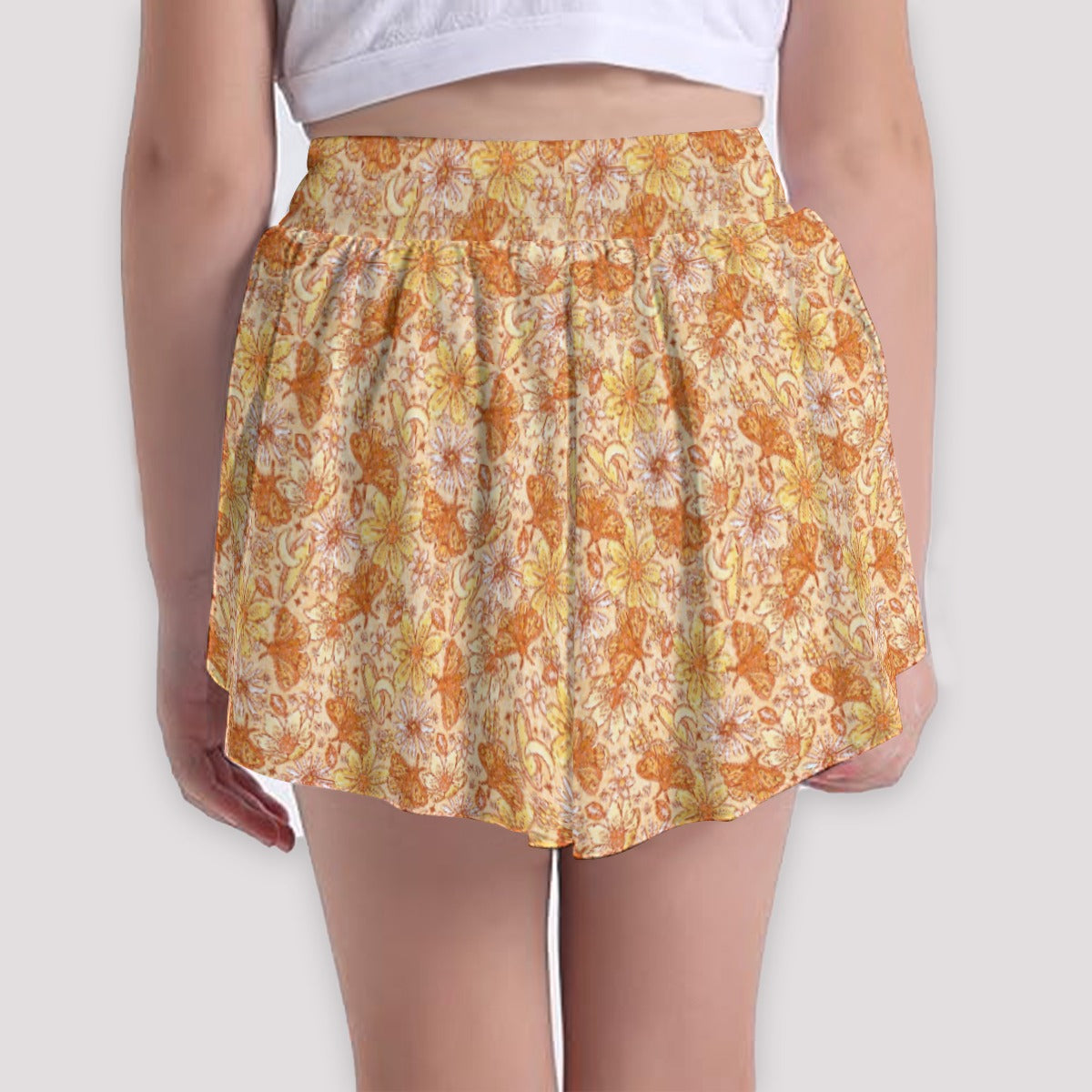 Orange Crystal Moths - Girls’ Flowy Pocket Shorts