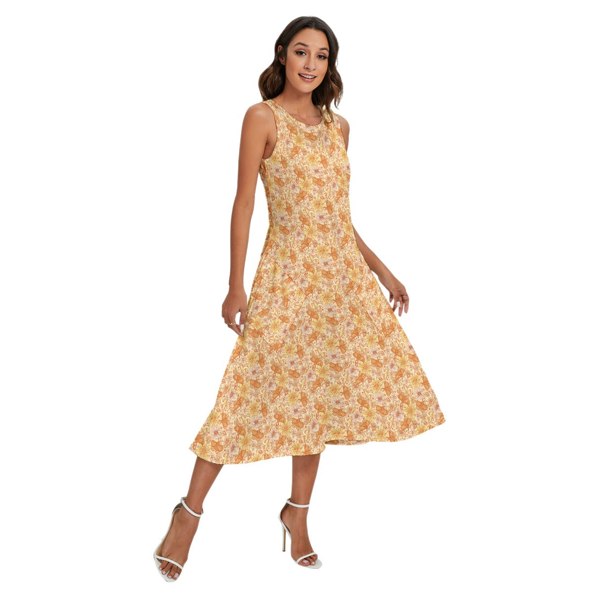 Orange Crystal Moths - Women’s Diagonal Pocket Midi Dress