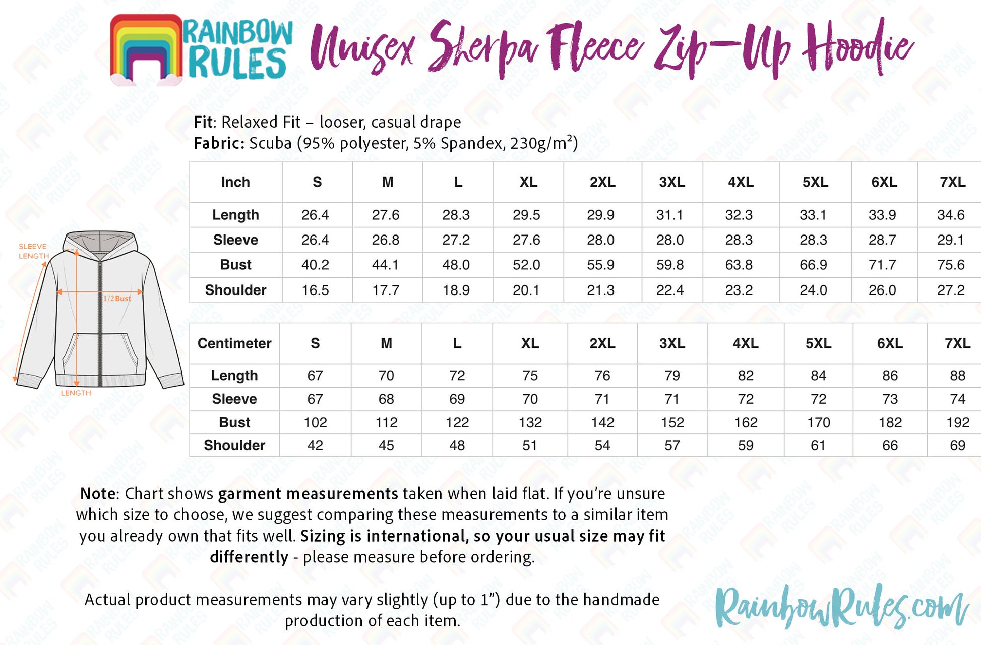 Size Chart - Unisex Sherpa Fleece Zip-Up Hoodie