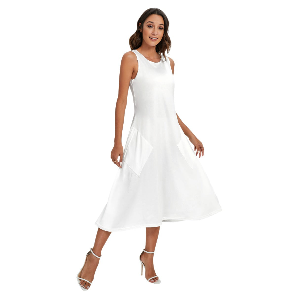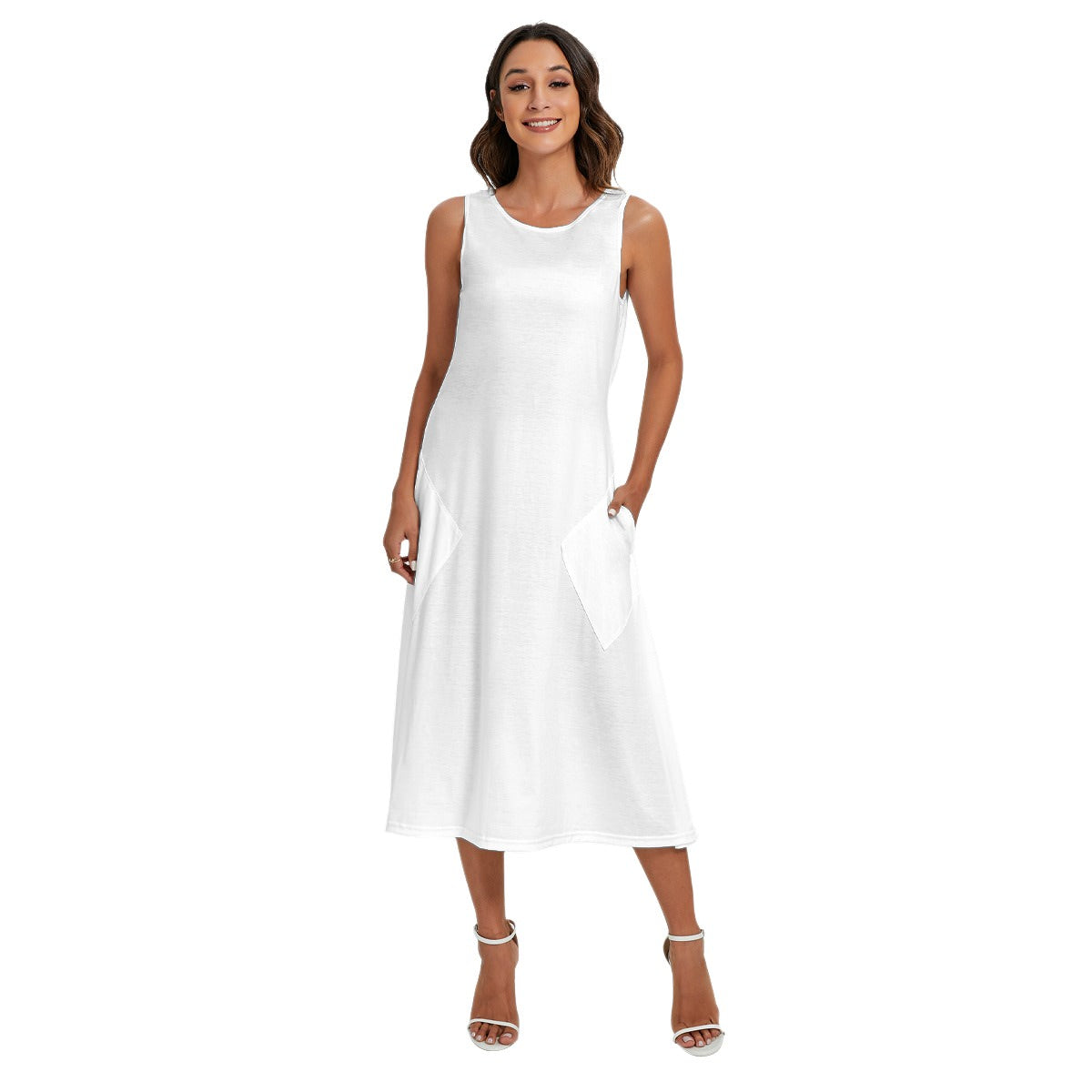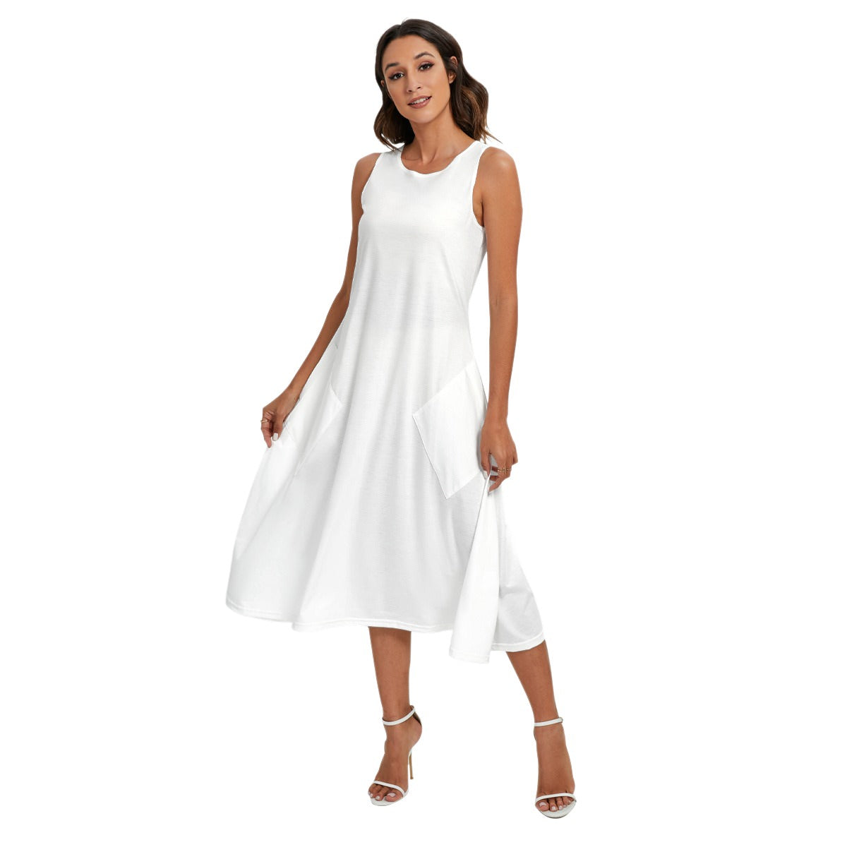 Clean lines, soft fabric, and standout style — our Women’s Diagonal Pocket Midi Dress is equal parts comfort and everyday charm. With a sleeveless cut, classic crew neckline, and relaxed A-line shape, it flatters without clinging and moves easily from day to night.