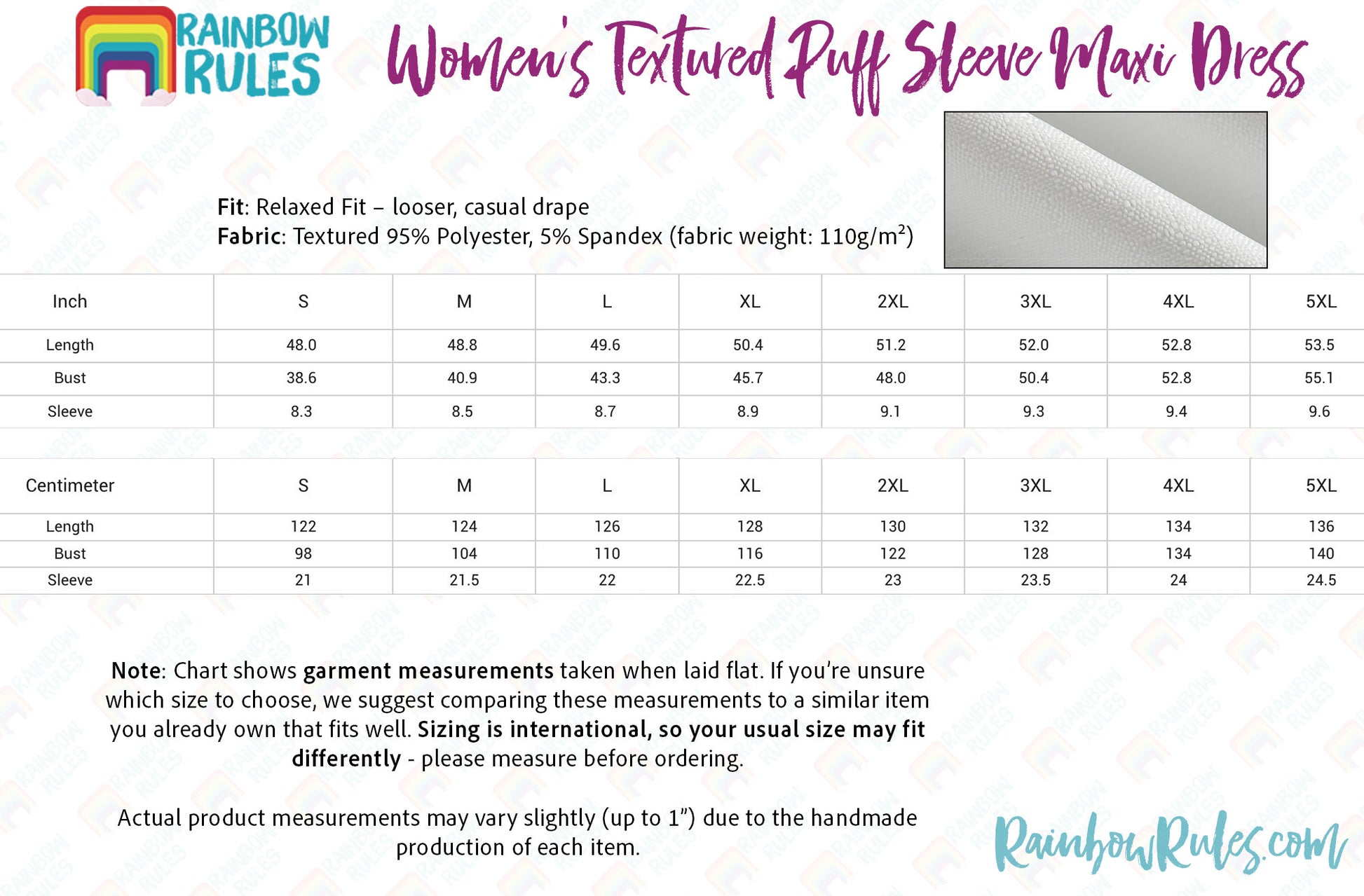 Size Chart - Women's Textured Puff Sleeve Maxi Dress