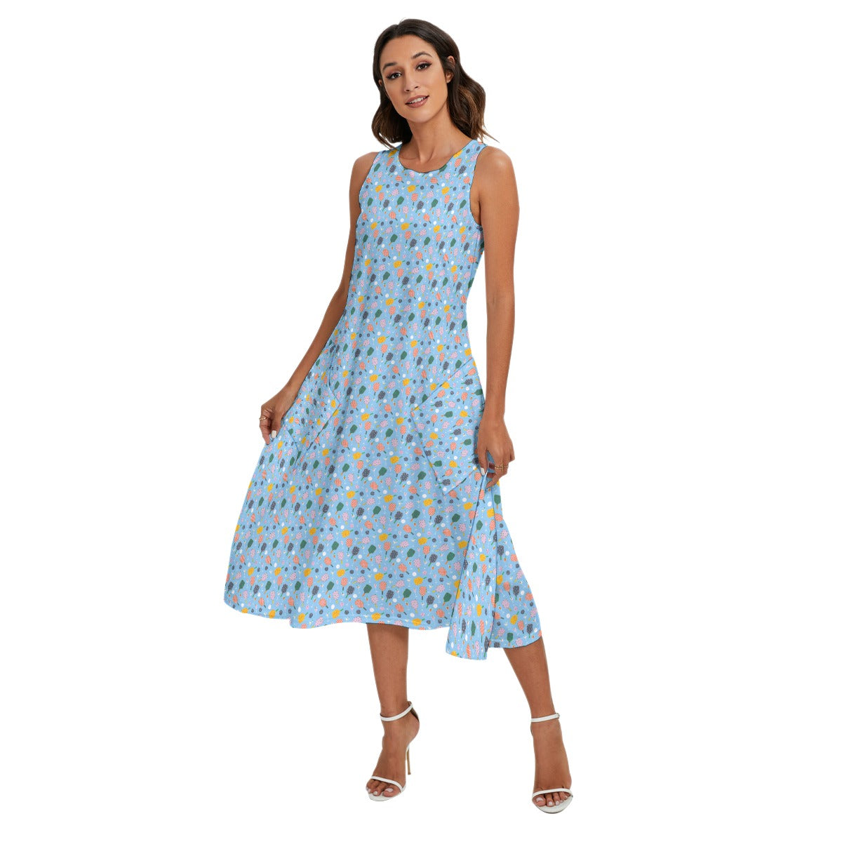 Clean lines, soft fabric, and standout style — our Women’s Diagonal Pocket Midi Dress is equal parts comfort and everyday charm. With a sleeveless cut, classic crew neckline, and relaxed A-line shape, it flatters without clinging and moves easily from day to night.