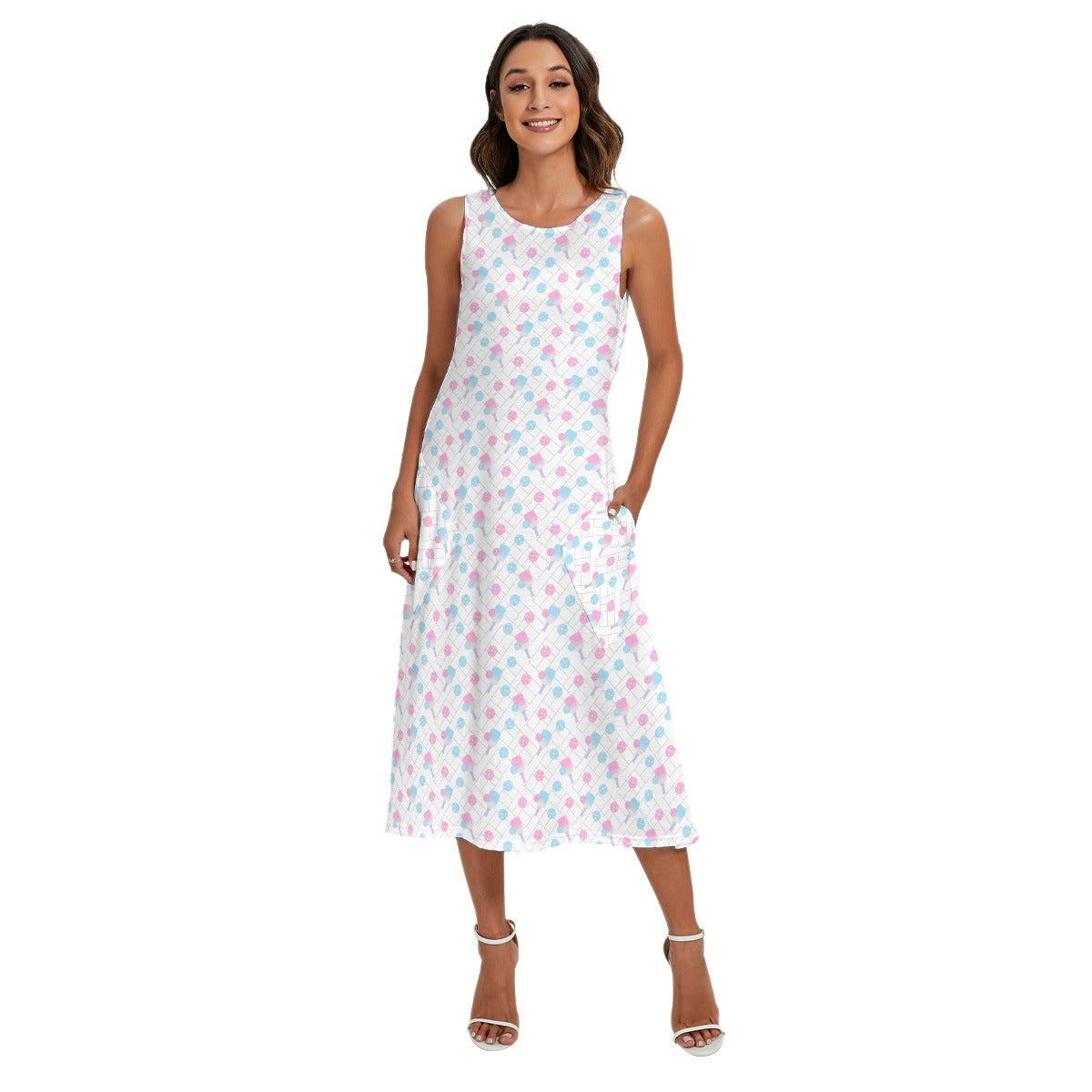 Clean lines, soft fabric, and standout style — our Women’s Diagonal Pocket Midi Dress is equal parts comfort and everyday charm. With a sleeveless cut, classic crew neckline, and relaxed A-line shape, it flatters without clinging and moves easily from day to night.