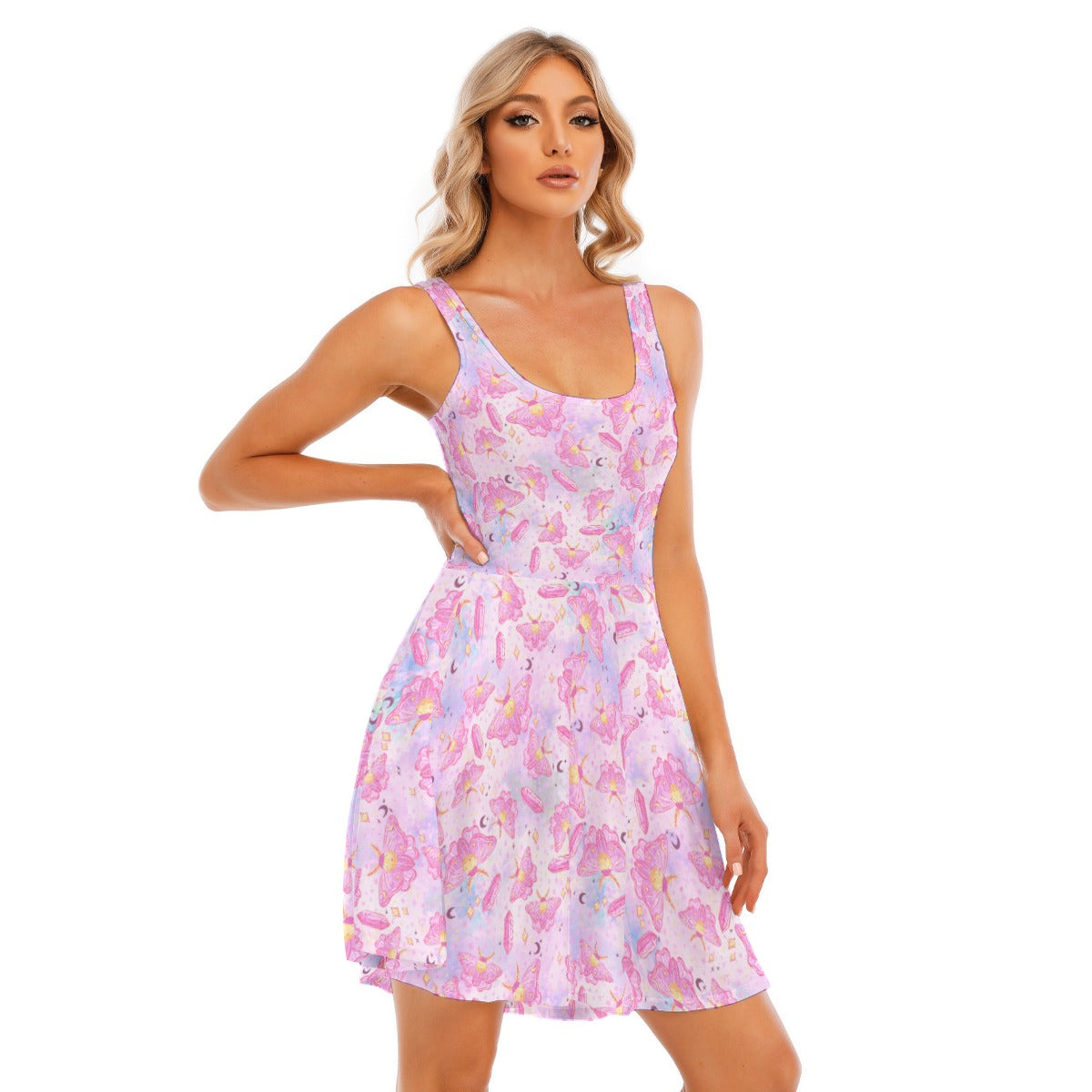Pink Crystal Lunar Moths - Women's Sleeveless Pocket Skater Dress