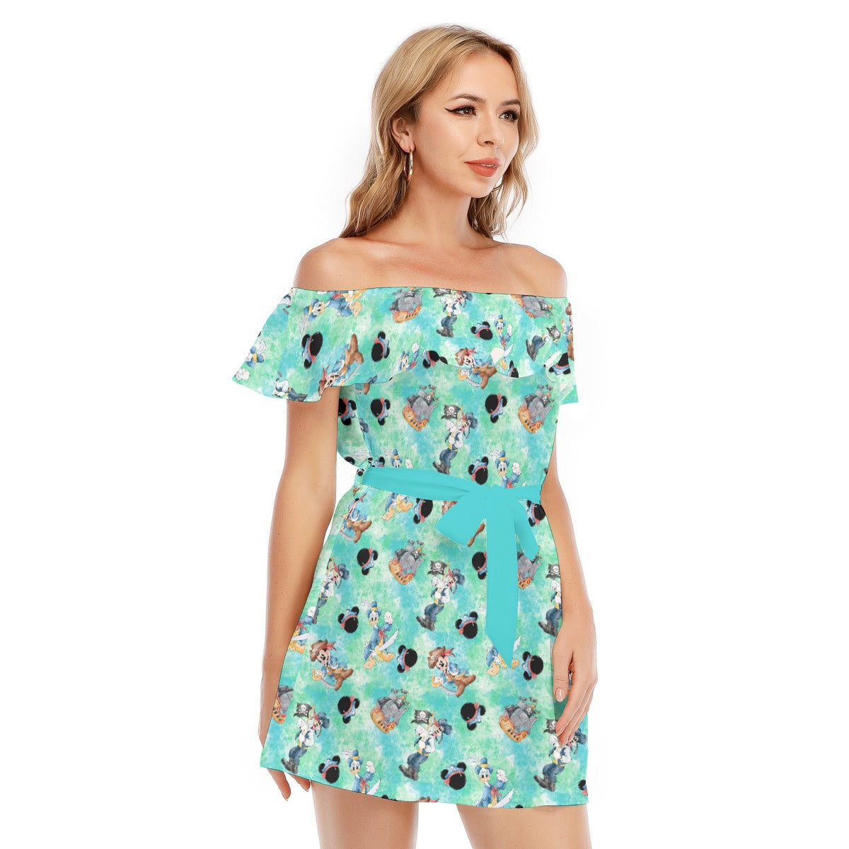 Pirate Crew Watercolor Adventure - Women's Off-shoulder Ruffle Dress
