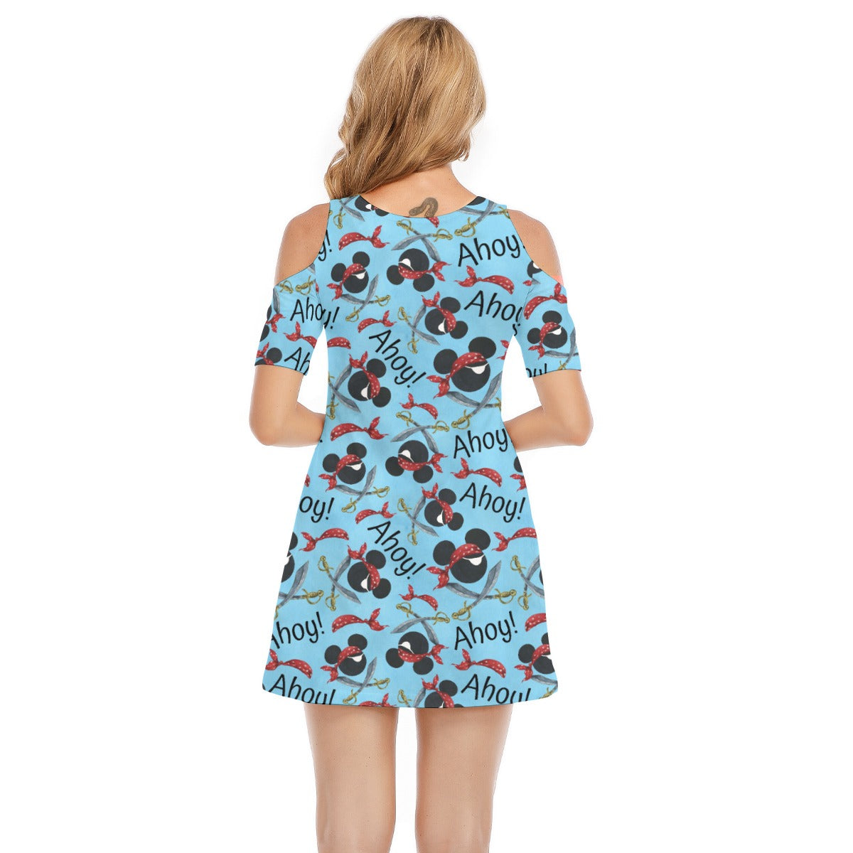 Pirate Mouse Ahoy! - Women's Cold Shoulder Cotton Dress