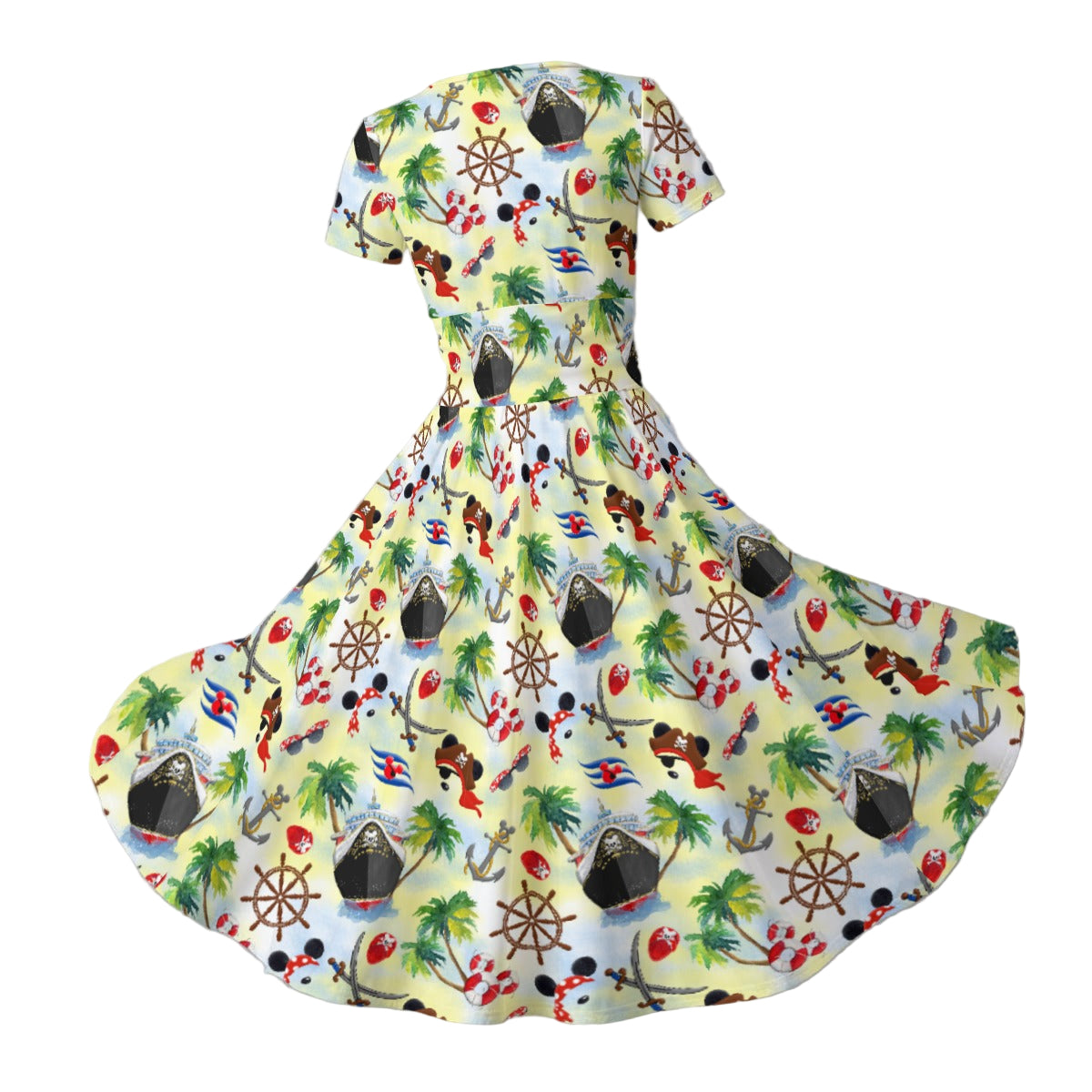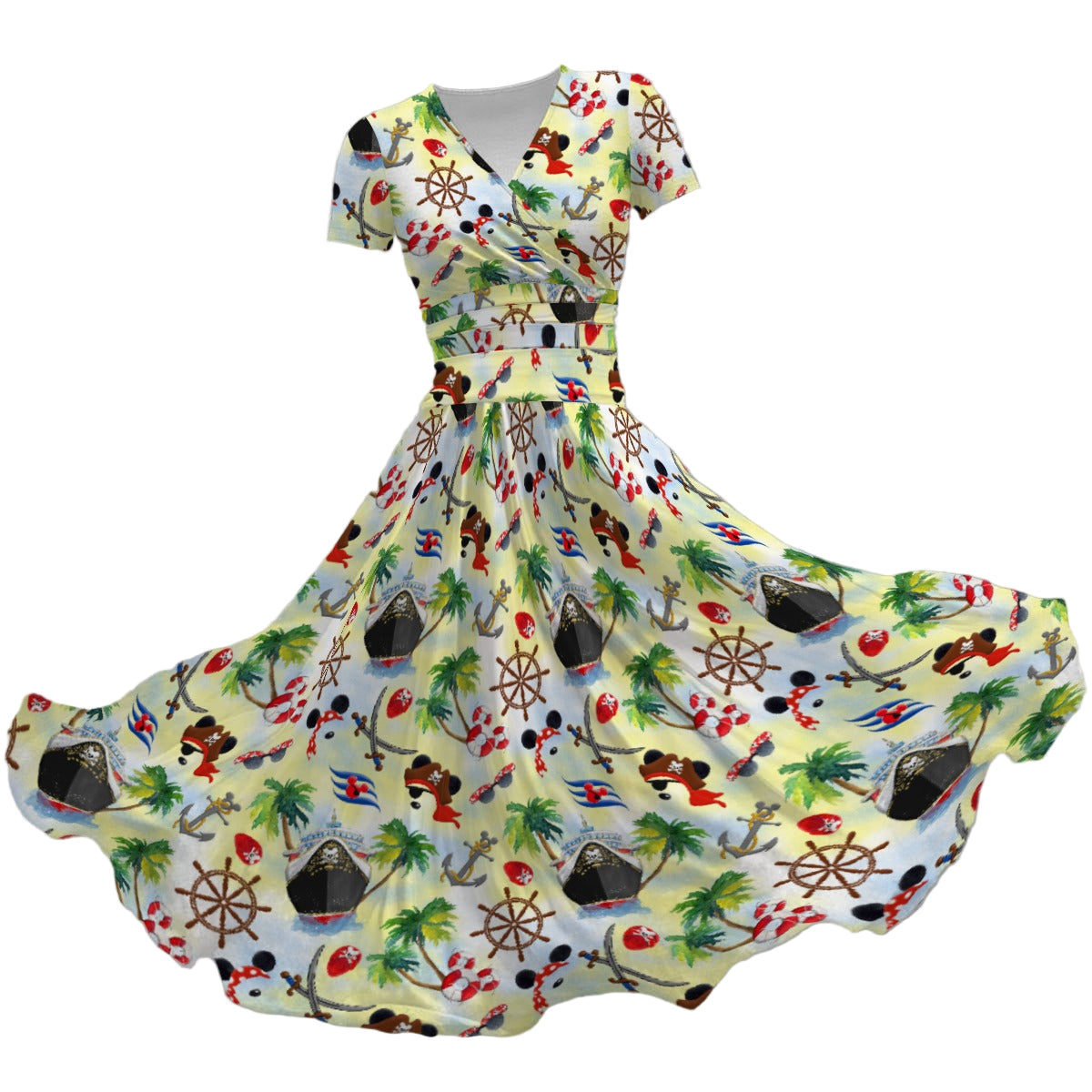 Set sail on a swashbuckling voyage with this nautical-inspired print celebrating the spirit of Pirate Night on the high seas! Featuring classic pirate hats, ships, anchors, and palm trees sprinkled with a hint of mouse-ear magic, this playful pattern captures tropical adventure and ocean dreams—perfect for fans who love a splash of pirate fun.