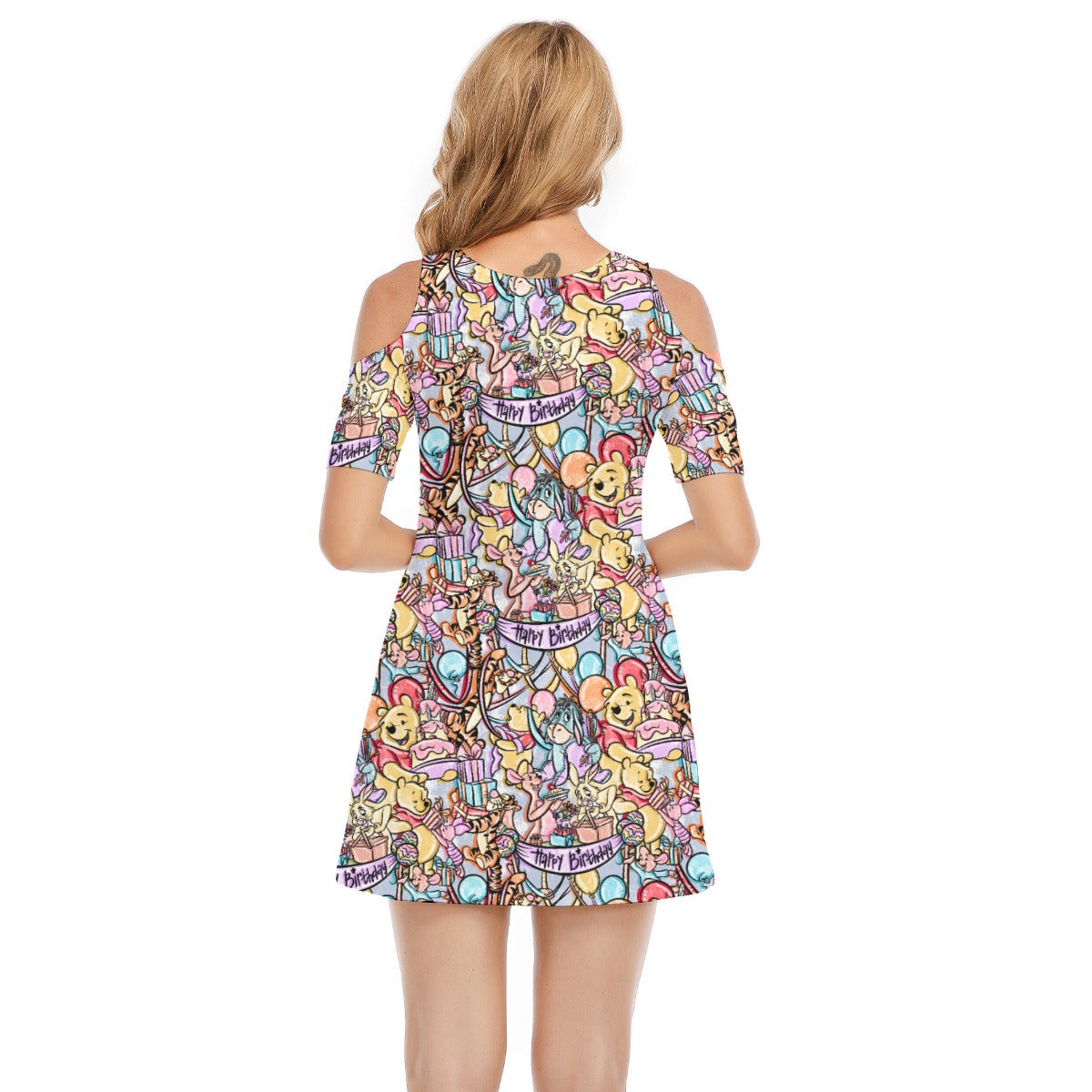 Birthday Bash in the Woods - Women's Cold Shoulder Cotton Dress