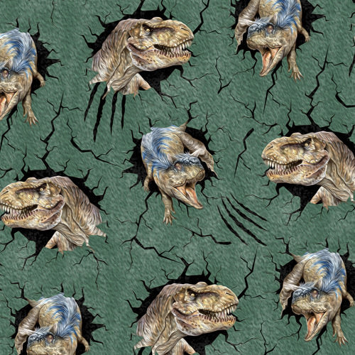Life finds a way—and so do these ferocious T-Rexes bursting through a cracked green surface! Inspired by a legendary dinosaur adventure, this pattern features realistic dinosaur heads breaking through with sharp teeth, piercing eyes, and dramatic claw marks. The muted teal-green background gives it that prehistoric, jungle-meets-science vibe, while the detailed shading makes every dino look ready to roar. It's bold, it's a little bit menacing, and it's perfect for anyone who's ever dreamed of a dino adventure.