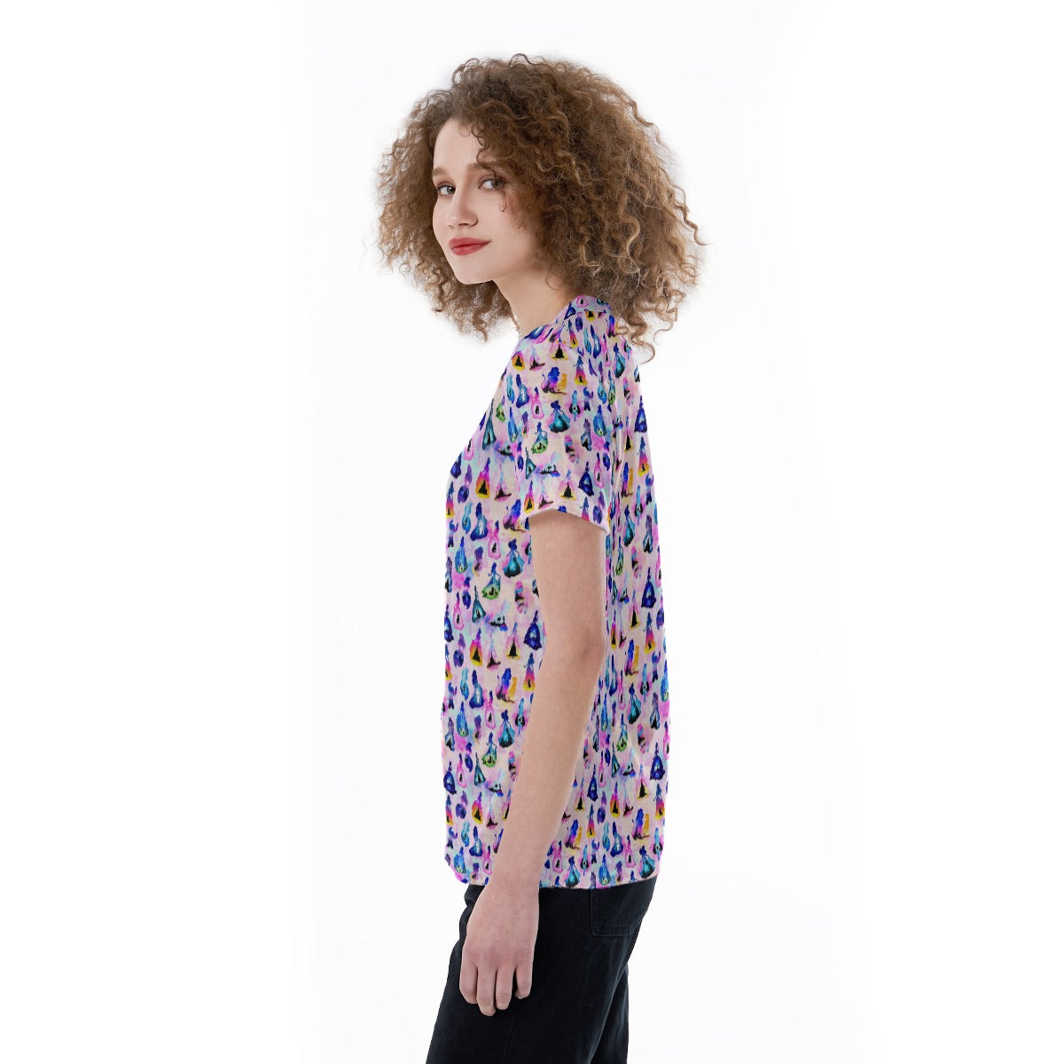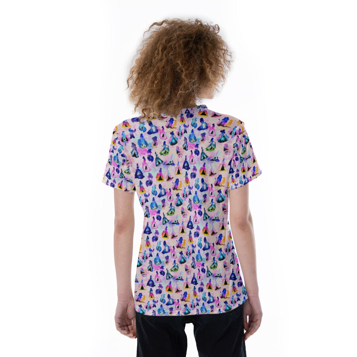 Princess And Classic Animation Silhouettes - Women's Short Sleeve V-Neck T-Shirt