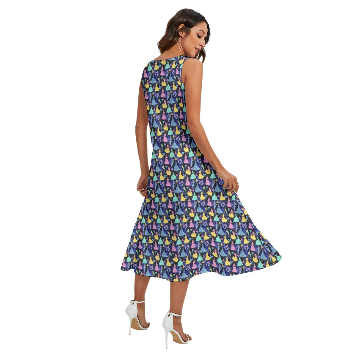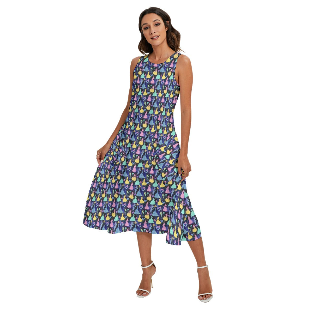 Princess Glitter Silhouettes - Women’s Diagonal Pocket Midi Dress