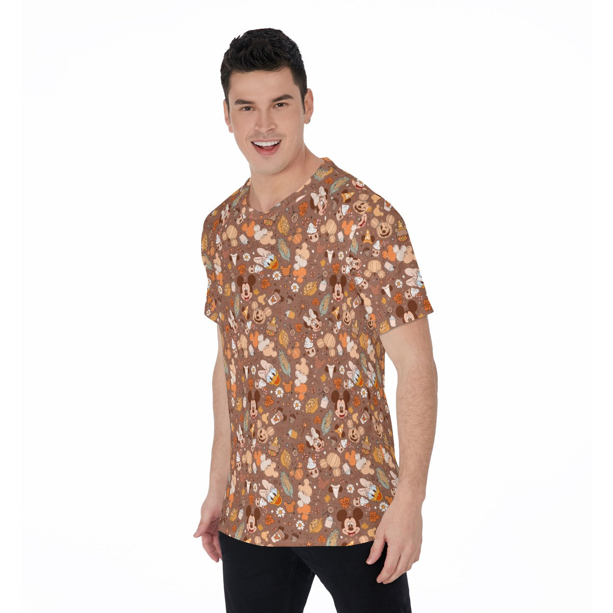 Sweater weather and pumpkin spice come together in this warm-toned print featuring beloved friends surrounded by autumn leaves, cozy treats, and seasonal snacks. Filled with mouse-ear-shaped accents and harvest colors, it’s a festive nod to the magic of crisp fall days and spiced delights. Perfect for those who crave a little extra “pumpkin magic” in their wardrobe!