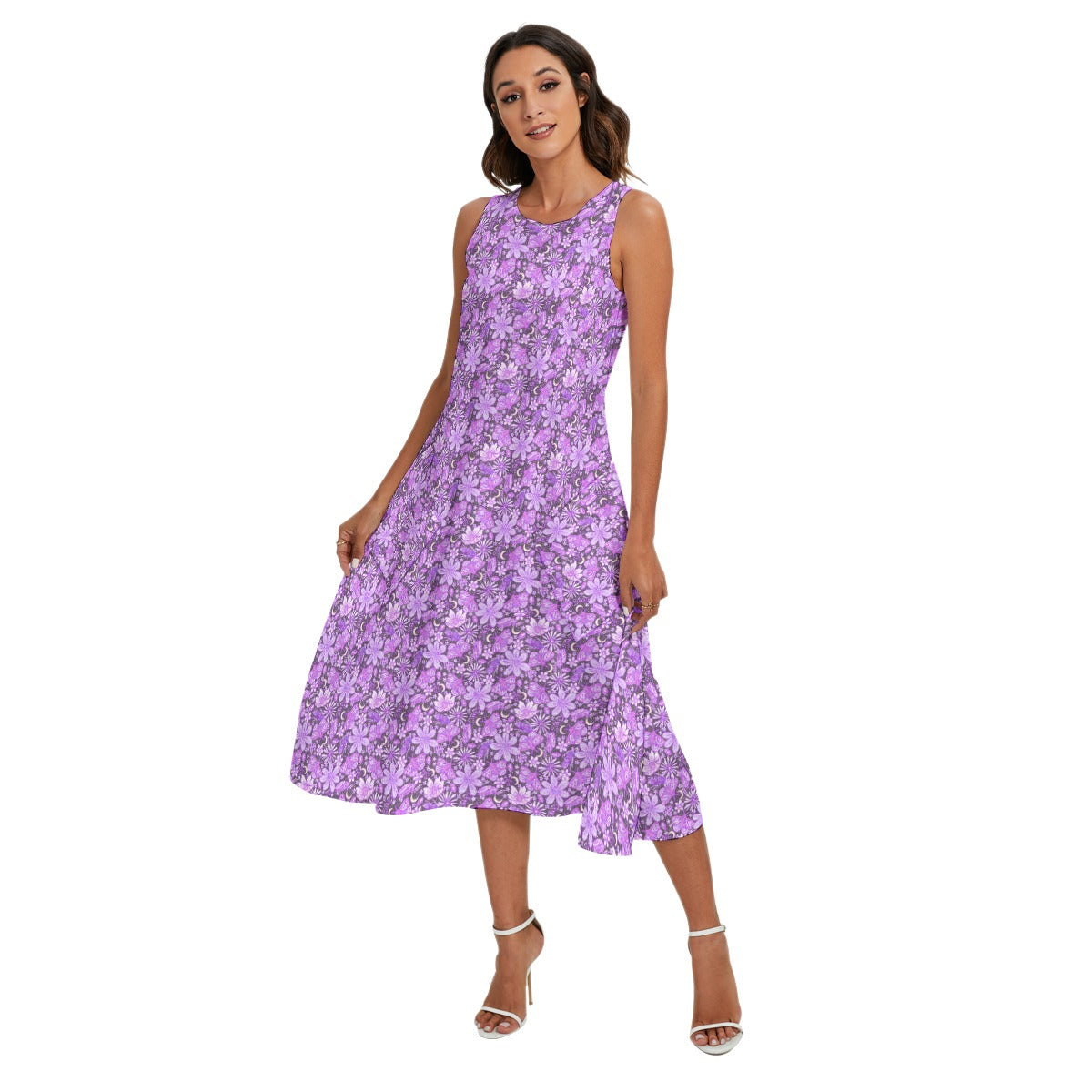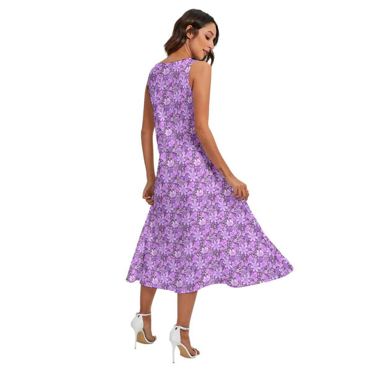 Purple Crystal Moths - Women’s Diagonal Pocket Midi Dress