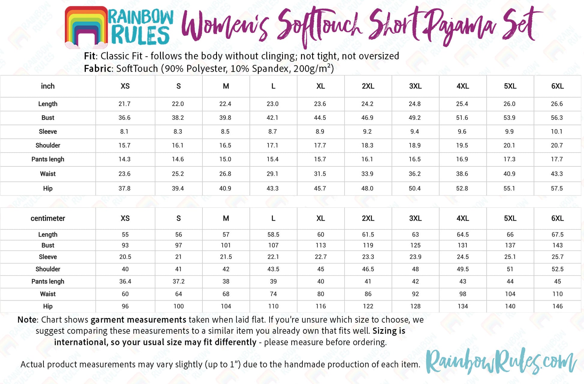 Size Chart - Women’s SoftTouch Short Pajama Set