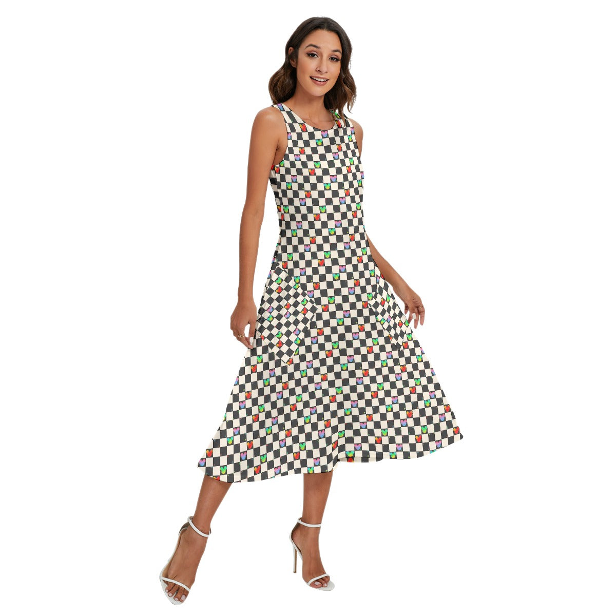 Rainbow Checker Mouse Ears - Women’s Diagonal Pocket Midi Dress
