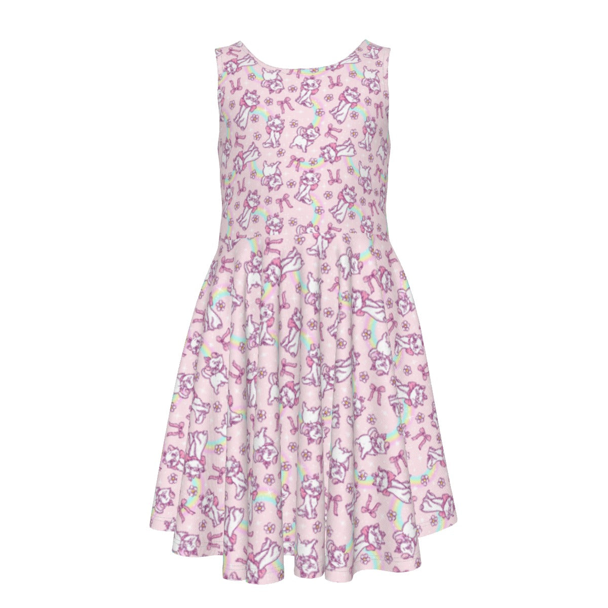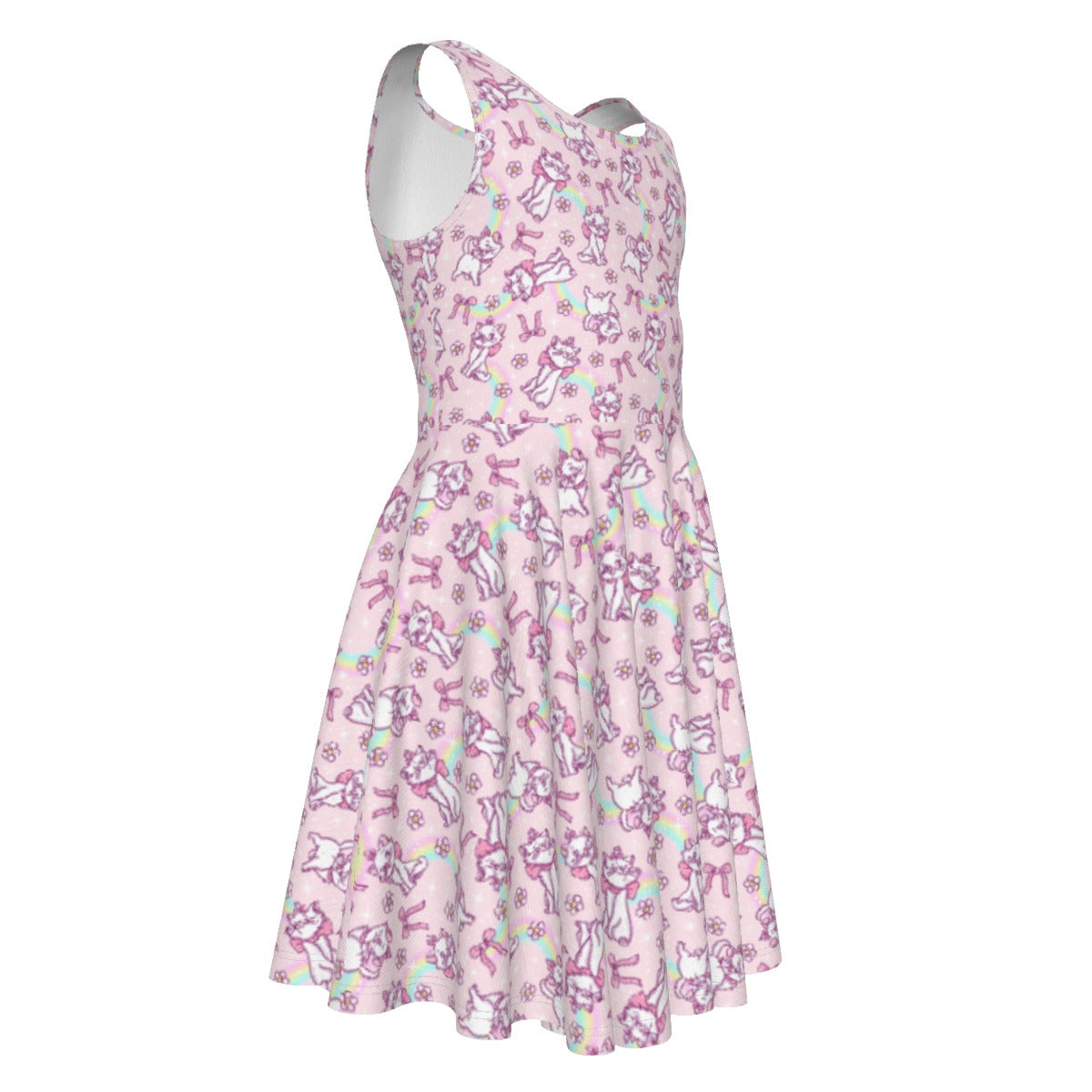 Rainbow Bow Kitty - Kid's Sleeveless Skater Dress