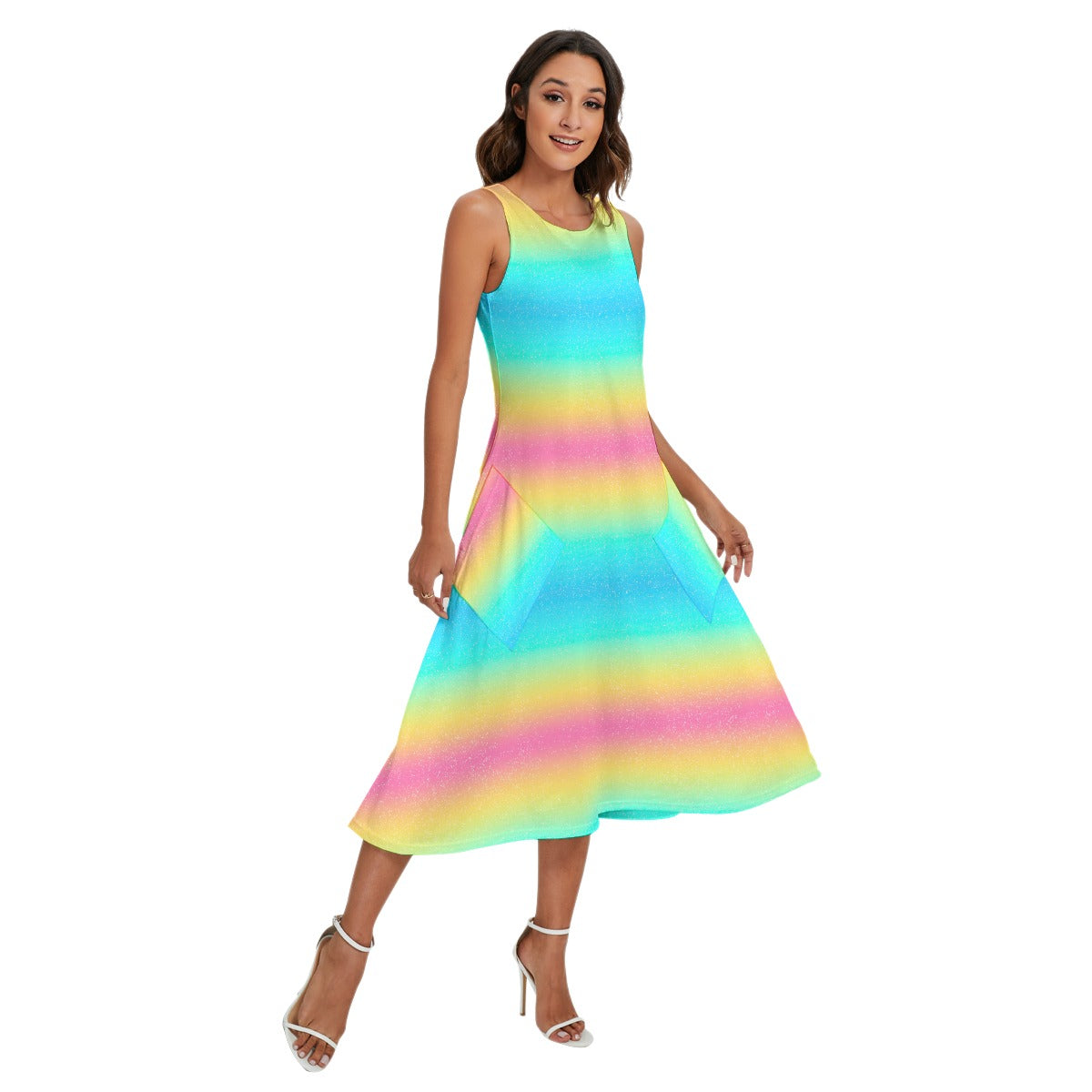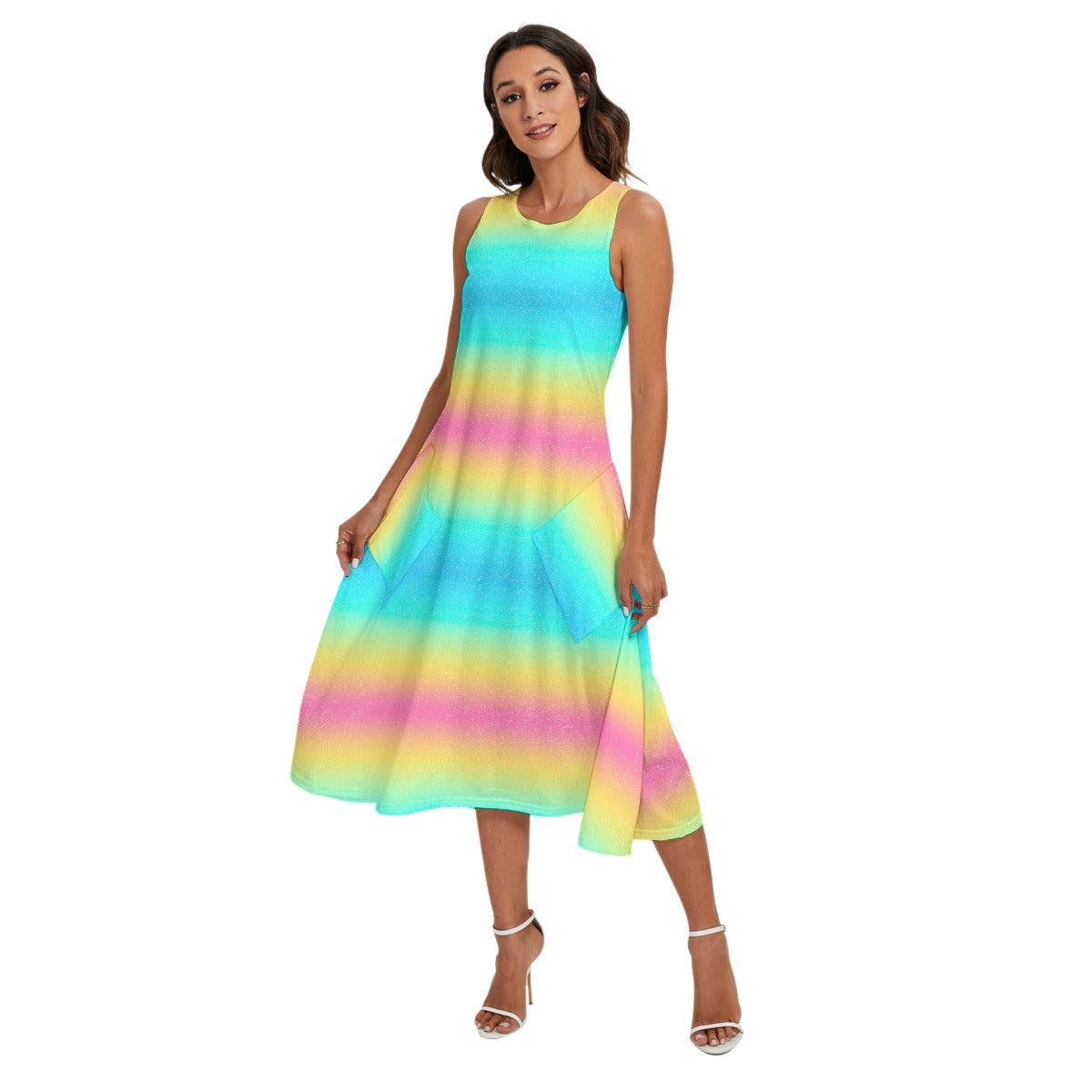 Rainbow Ombre - Women’s Diagonal Pocket Midi Dress