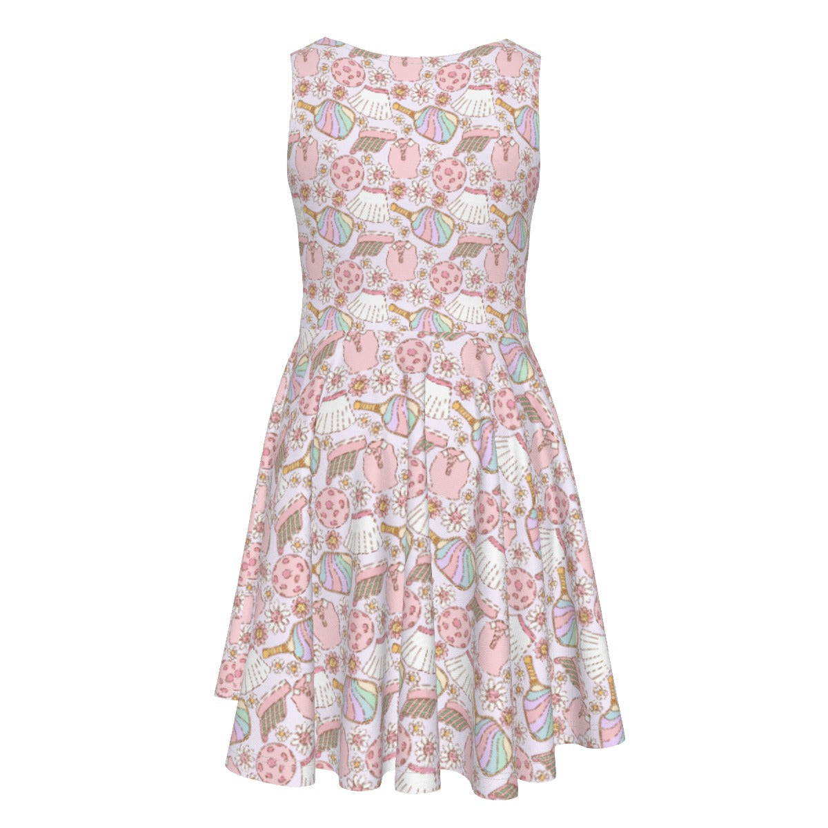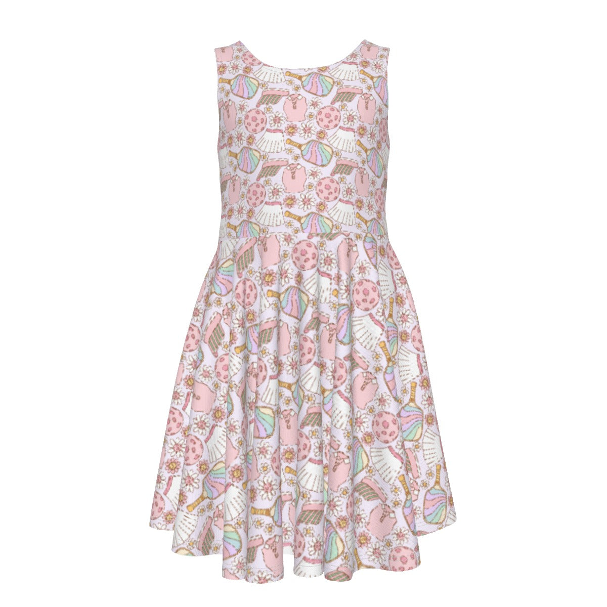 Rainbow Pickleball - Kid's Sleeveless Skater Dress