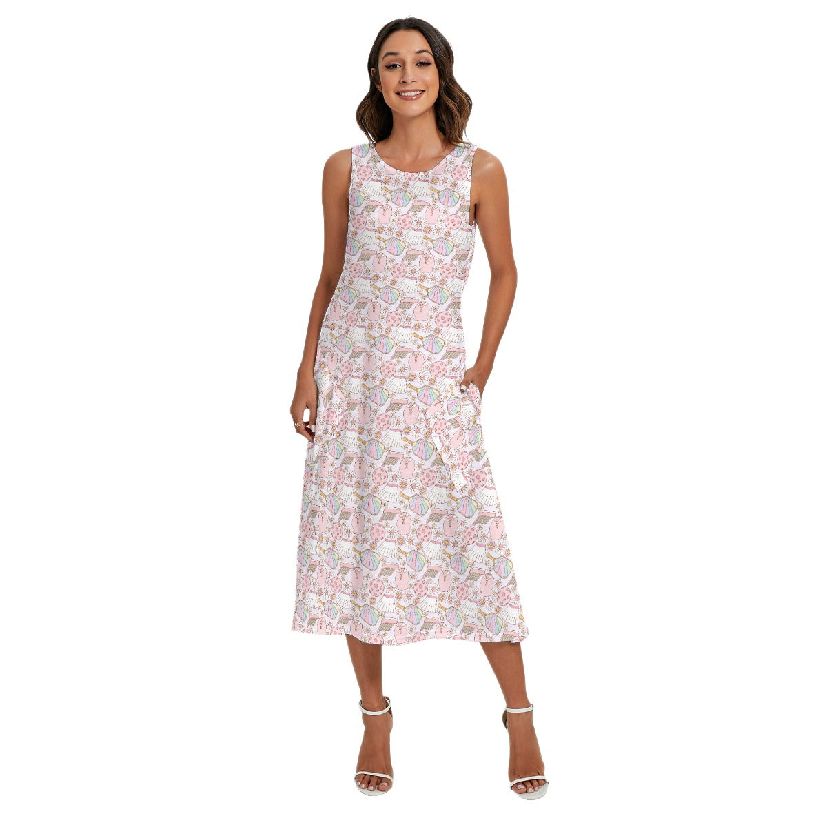 Clean lines, soft fabric, and standout style — our Women’s Diagonal Pocket Midi Dress is equal parts comfort and everyday charm. With a sleeveless cut, classic crew neckline, and relaxed A-line shape, it flatters without clinging and moves easily from day to night.
