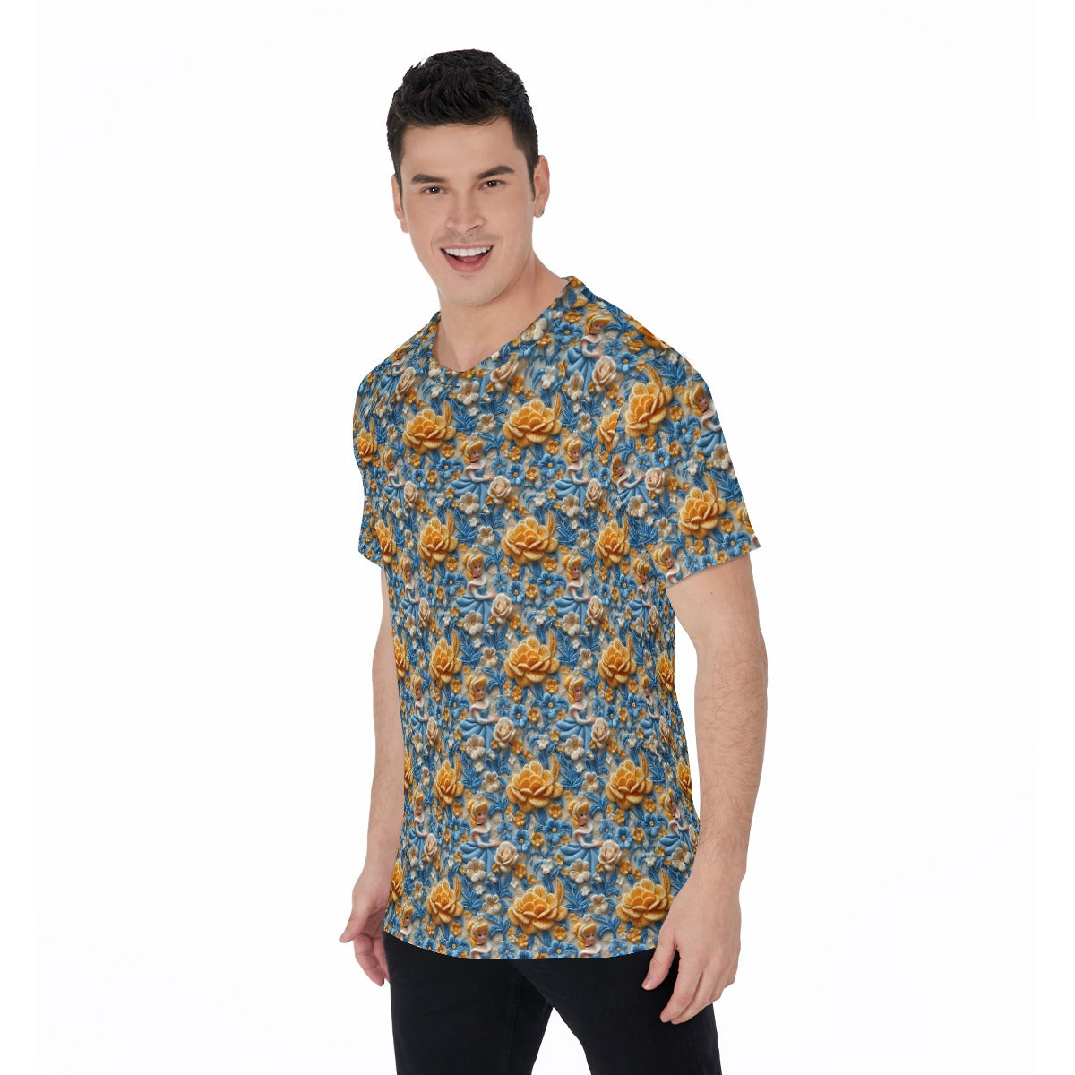 Step into a fairytale with this breathtaking embroidery-style pattern featuring elegant golden peonies blooming against a rich blue tapestry. Delicate floral details frame a graceful royal maiden’s portrait. The intricate textures and exquisite craftsmanship evoke the charm of regal embroidery, capturing timeless magic and royal elegance in a design fit for dreams.