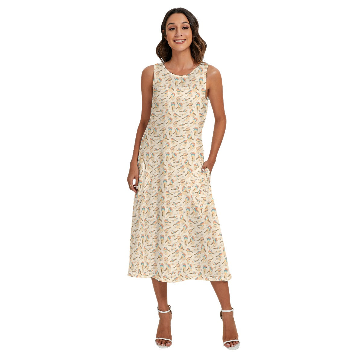Clean lines, soft fabric, and standout style — our Women’s Diagonal Pocket Midi Dress is equal parts comfort and everyday charm. With a sleeveless cut, classic crew neckline, and relaxed A-line shape, it flatters without clinging and moves easily from day to night.