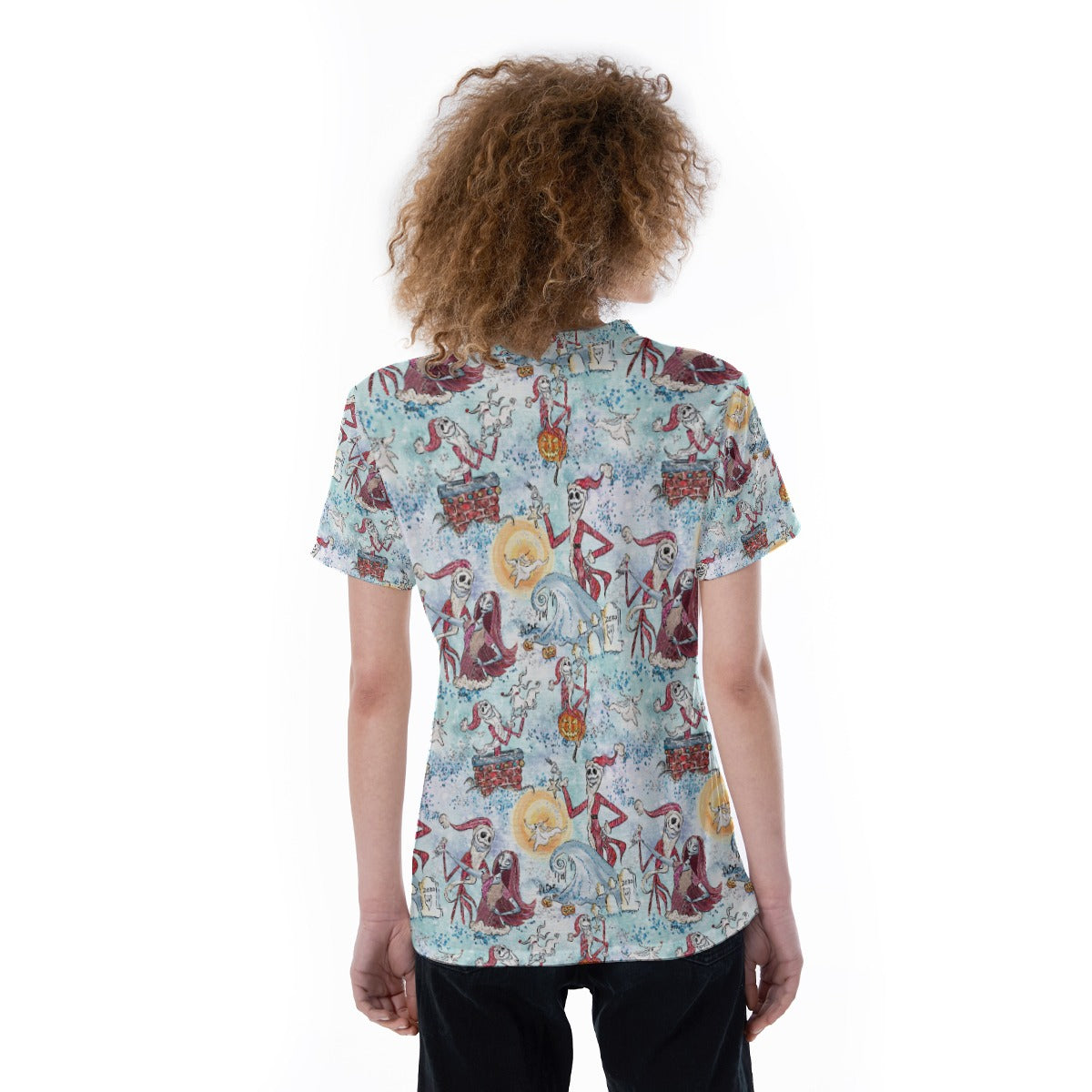 Santa Jack with Sally & Ghost DogZero - Women's Short Sleeve V-Neck T-Shirt