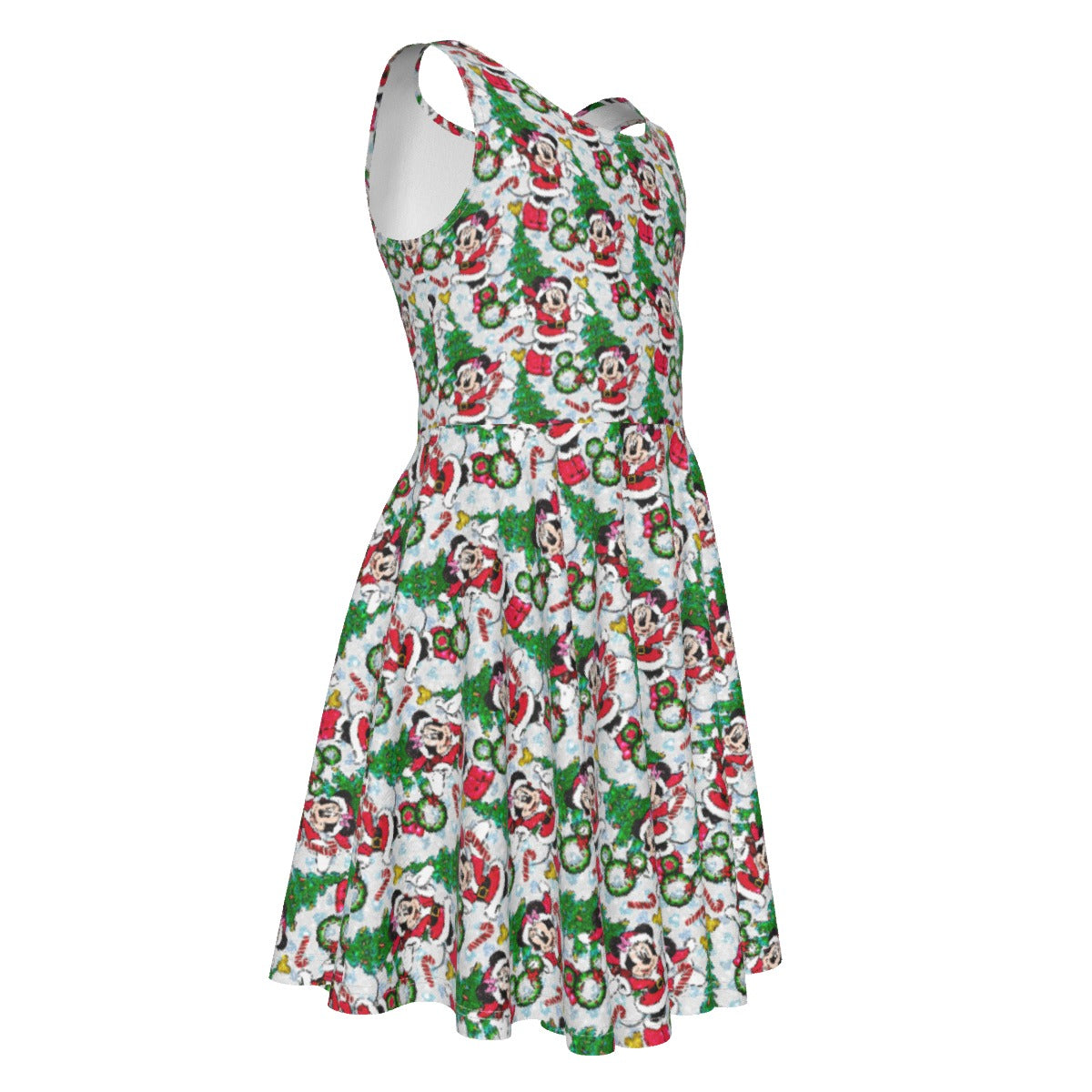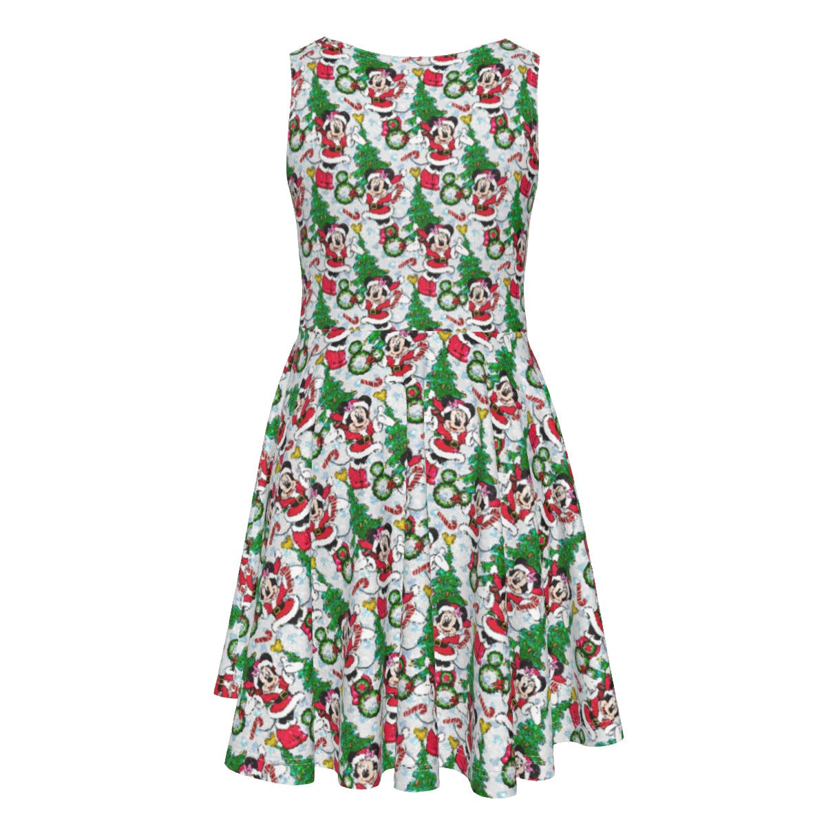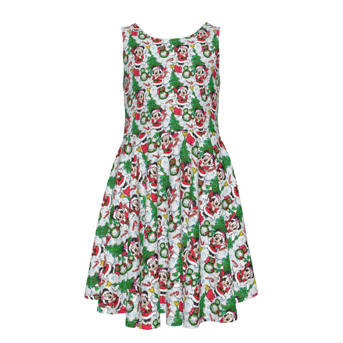 Santa Mouse with Sparkle - Kid's Sleeveless Skater Dress