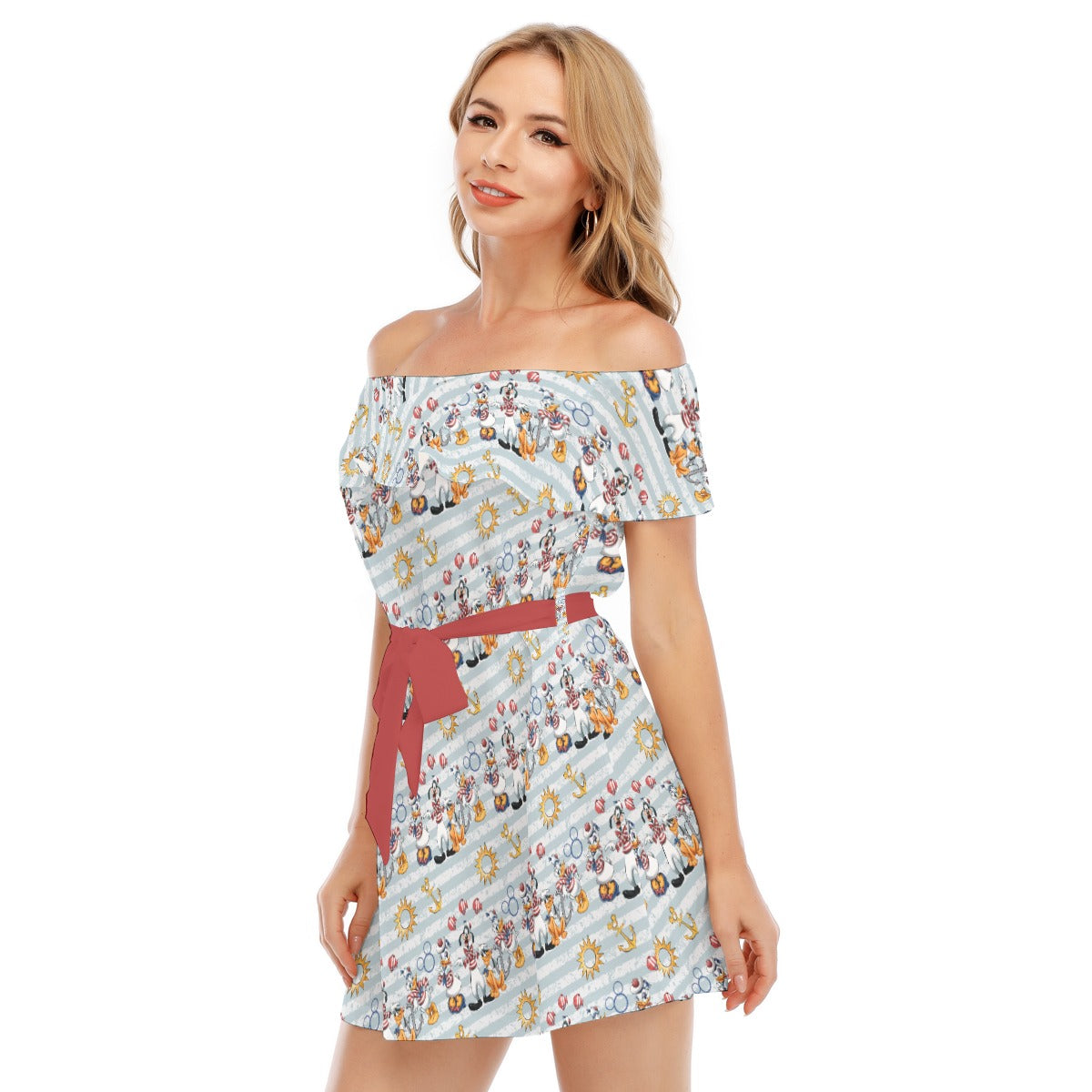 Set Sail with the Crew - Women's Off-shoulder Ruffle Dress