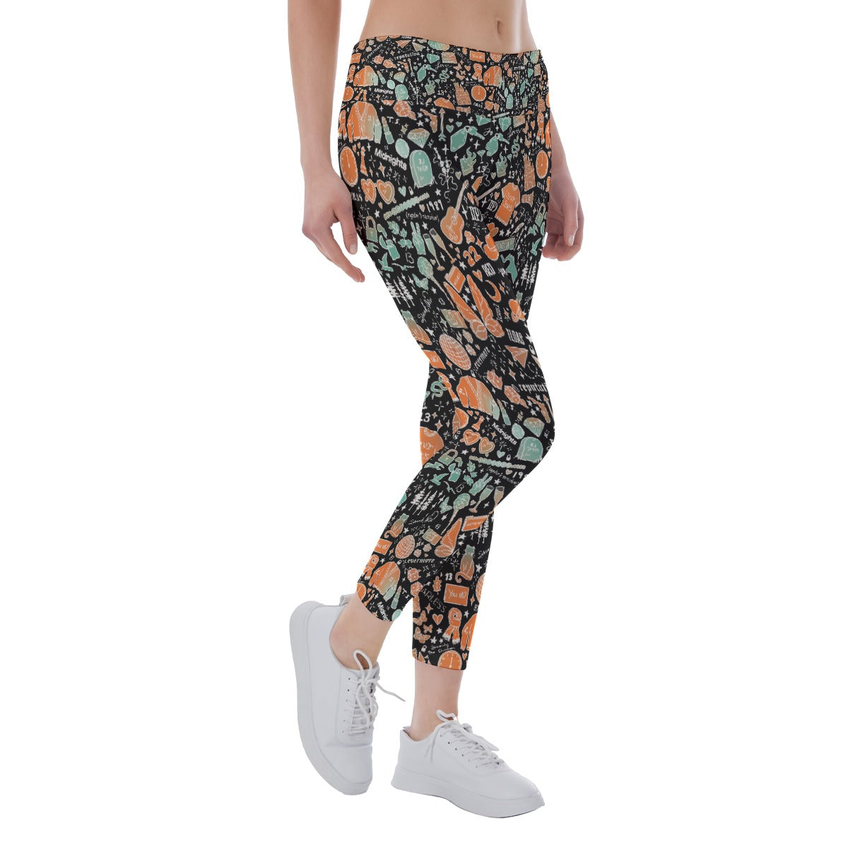 Step into the spotlight with this dazzling collage in mint green and orange! Packed with iconic references from every musical era—folklore forests, midnight clocks, reputation snakes and disco balls, vintage polaroids, lover hearts and butterflies, fearless castles, red scarves, cozy cardigans, champagne problems, and so much more—all rendered in a dreamy pastel palette. Hand-drawn doodles, album hints, lyric nods, and hidden Easter eggs are scattered across a bold black background. It's theatrical, it's nostalgic, and it's perfect for any superfan who's ready to take center stage.