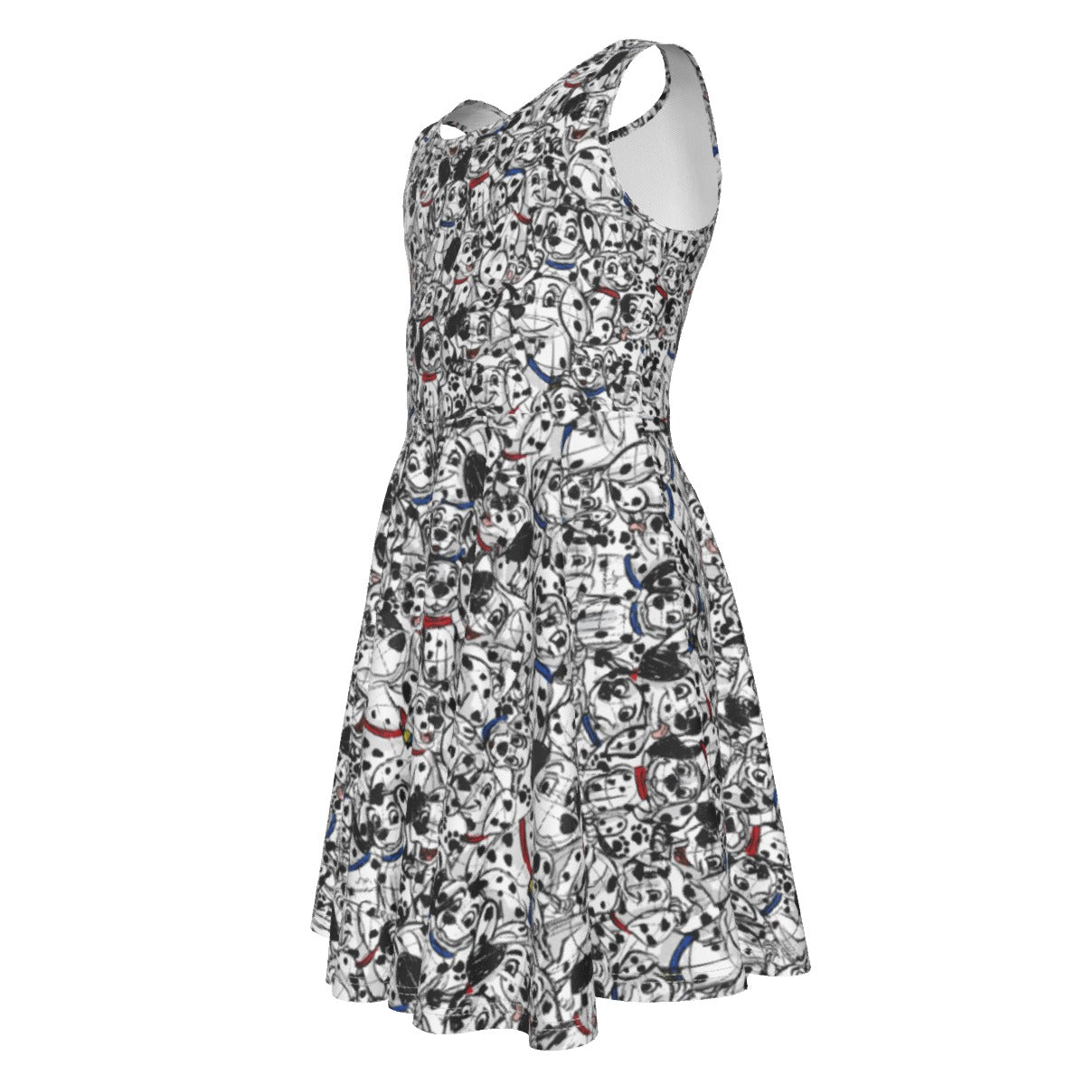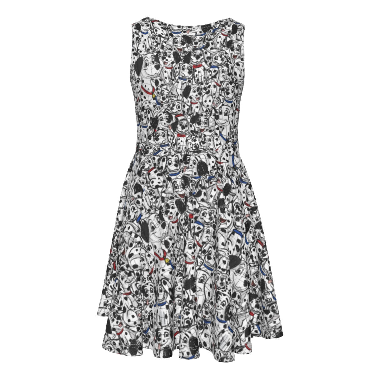 Sketchy Spotted Puppies - Kid's Sleeveless Skater Dress