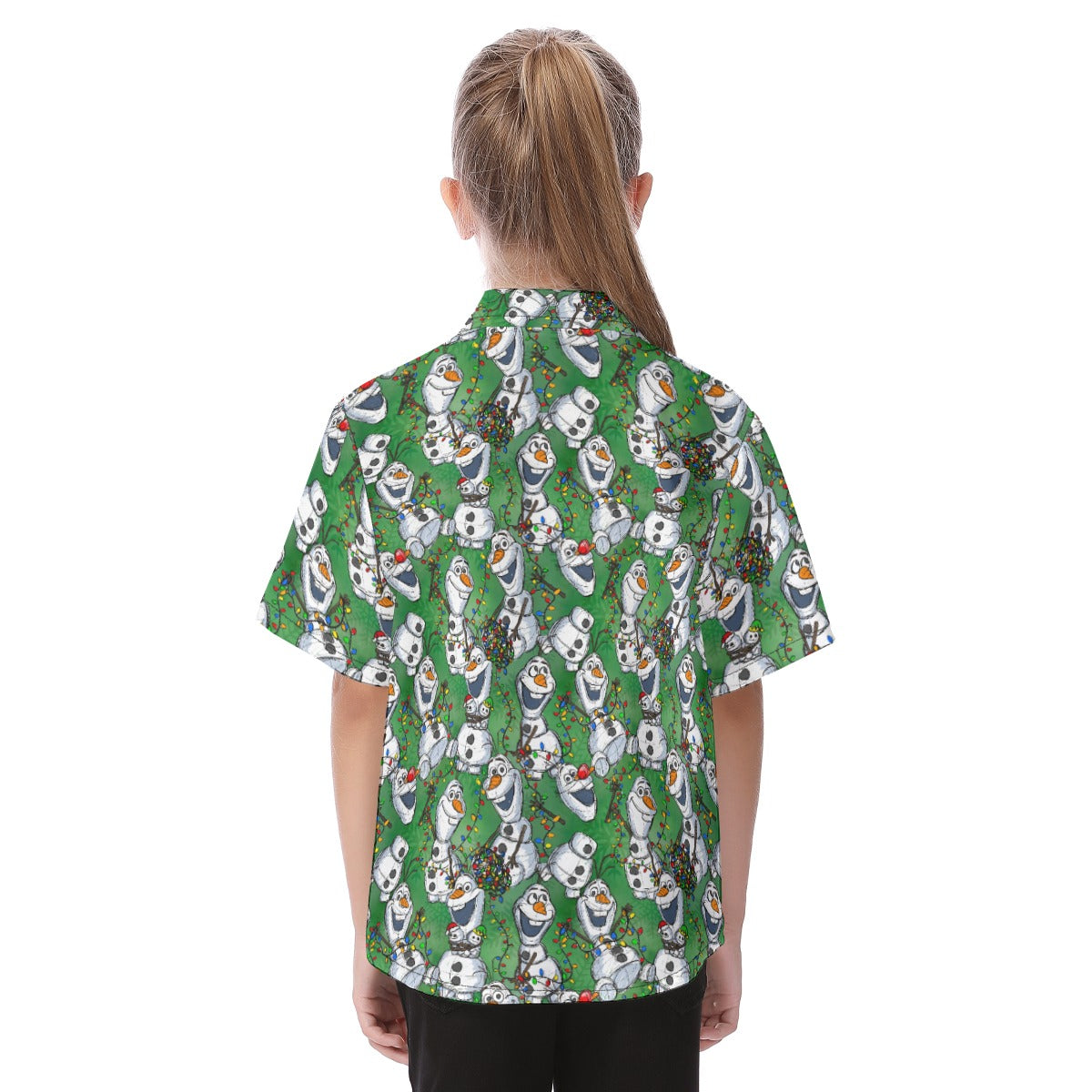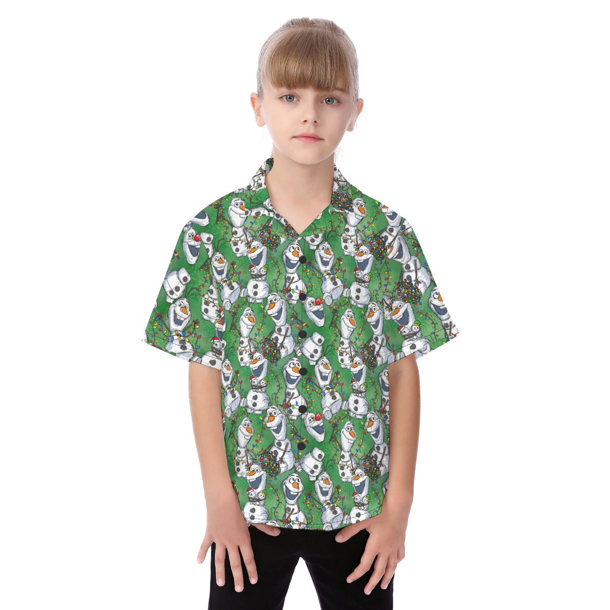 Sketched Snowman Christmas - Kid's Hawaiian Button Up Shirt