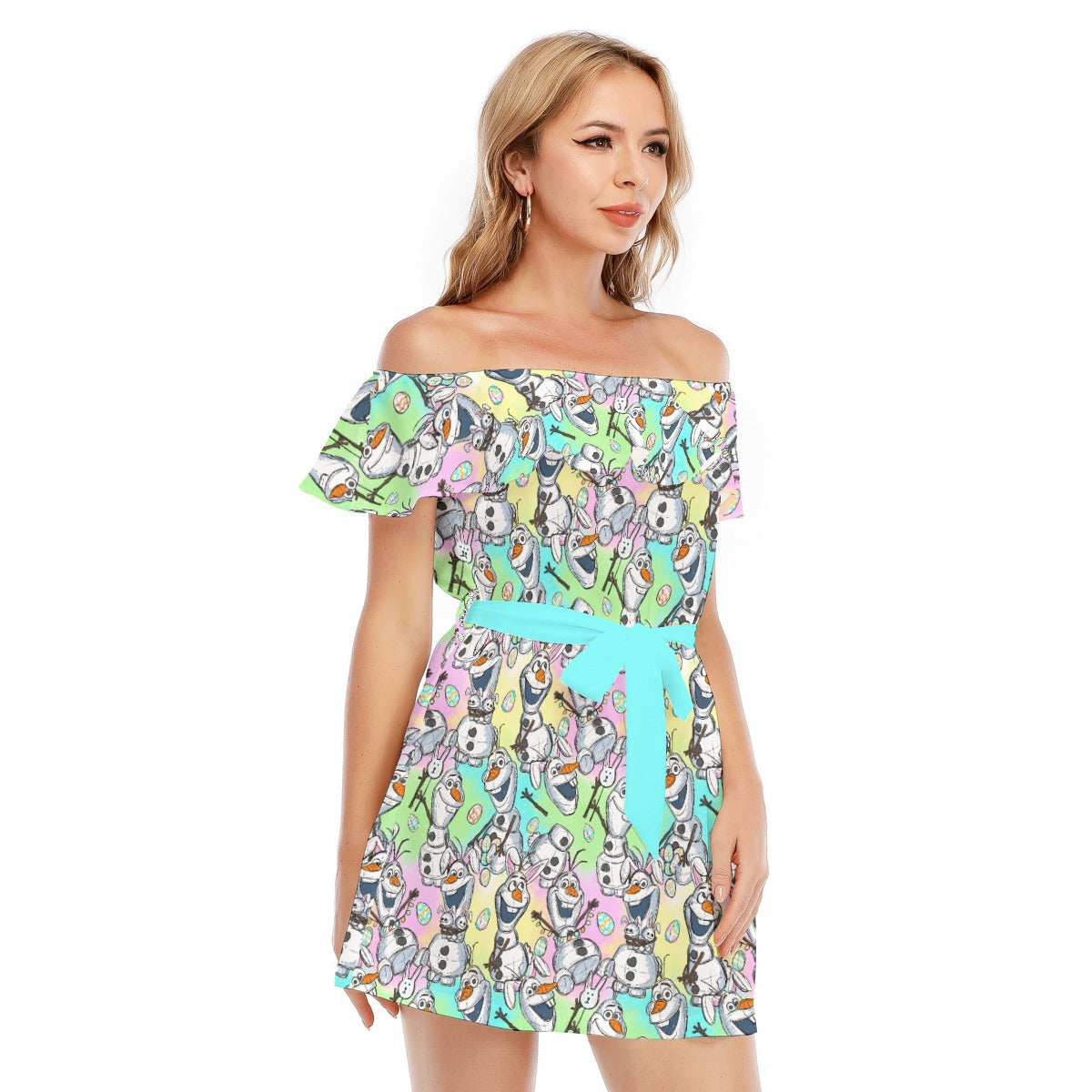 Sketched Snowman Easter - Women's Off-shoulder Ruffle Dress