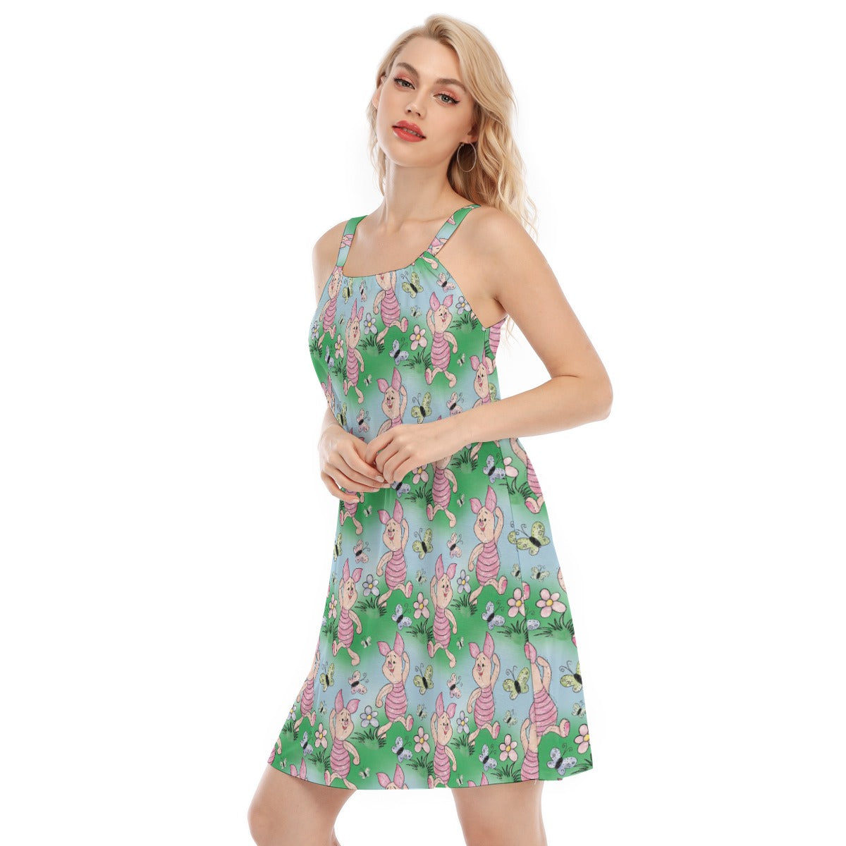 Sketched Shy Friend and Butterflies - Women’s Adjustable Sundress