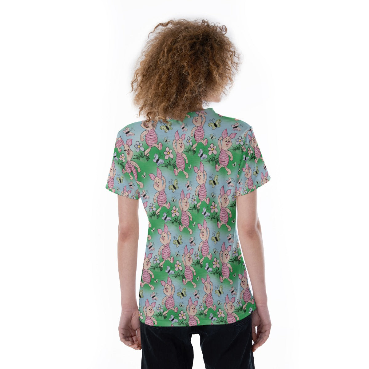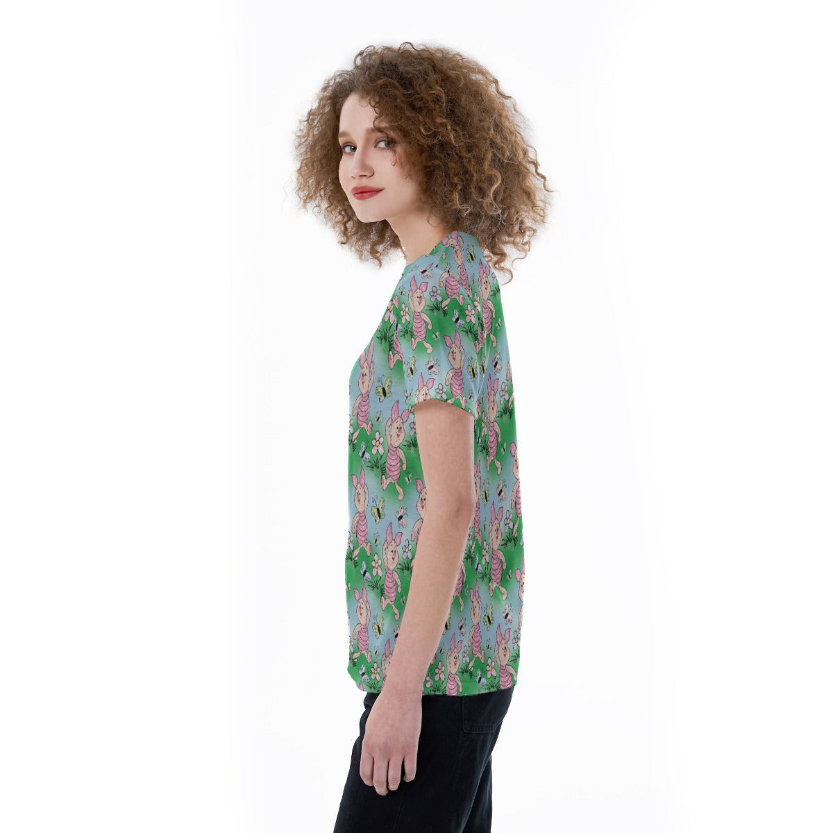 Sketched Shy Friend and Butterflies - Women's Short Sleeve V-Neck T-Shirt