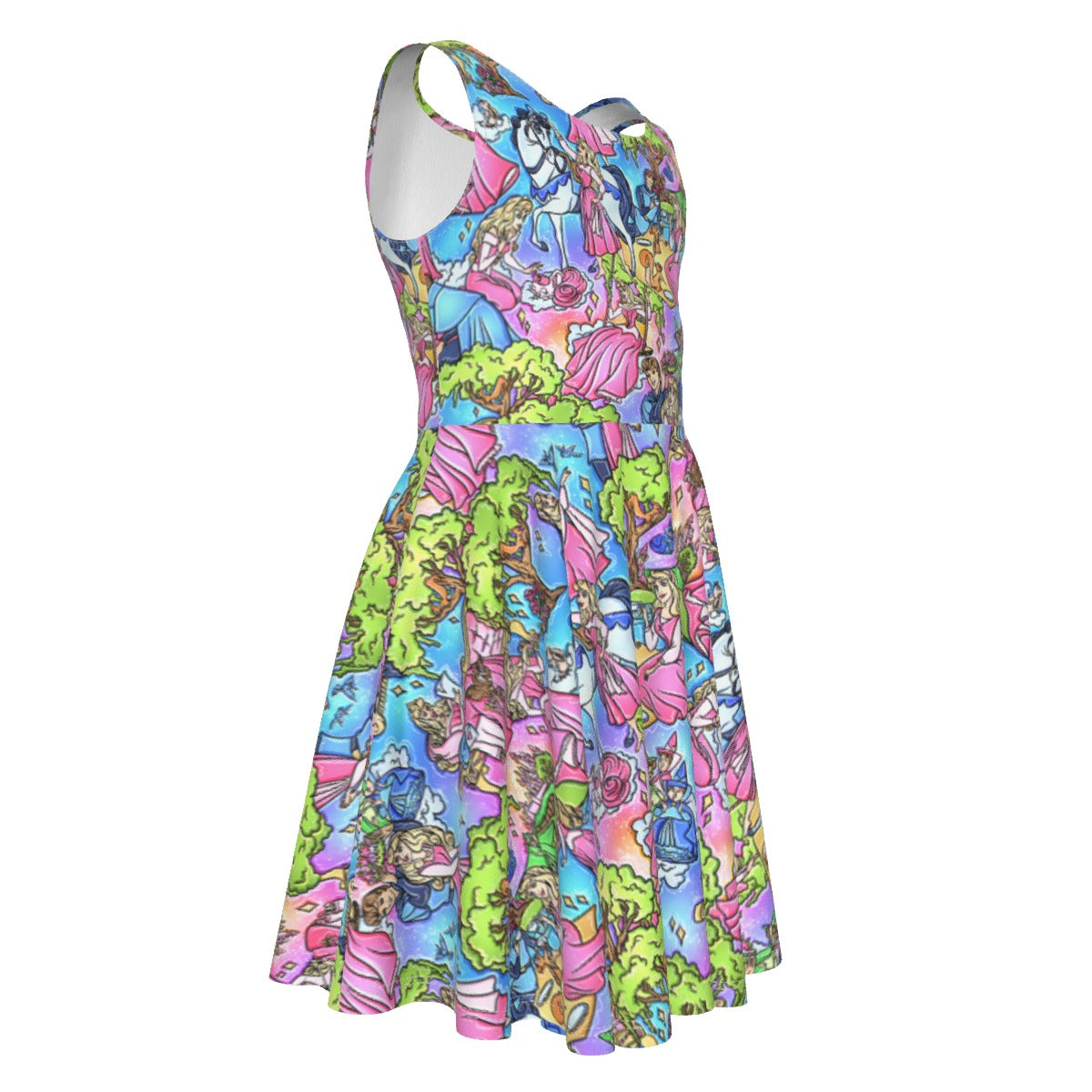 Dreaming Princess Storybook Scenes - Kid's Sleeveless Skater Dress