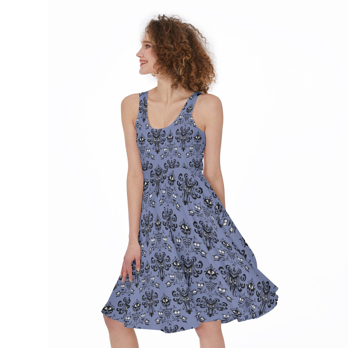 Spooky Mansion Wallpaper - Pocket Midi Skater Dress