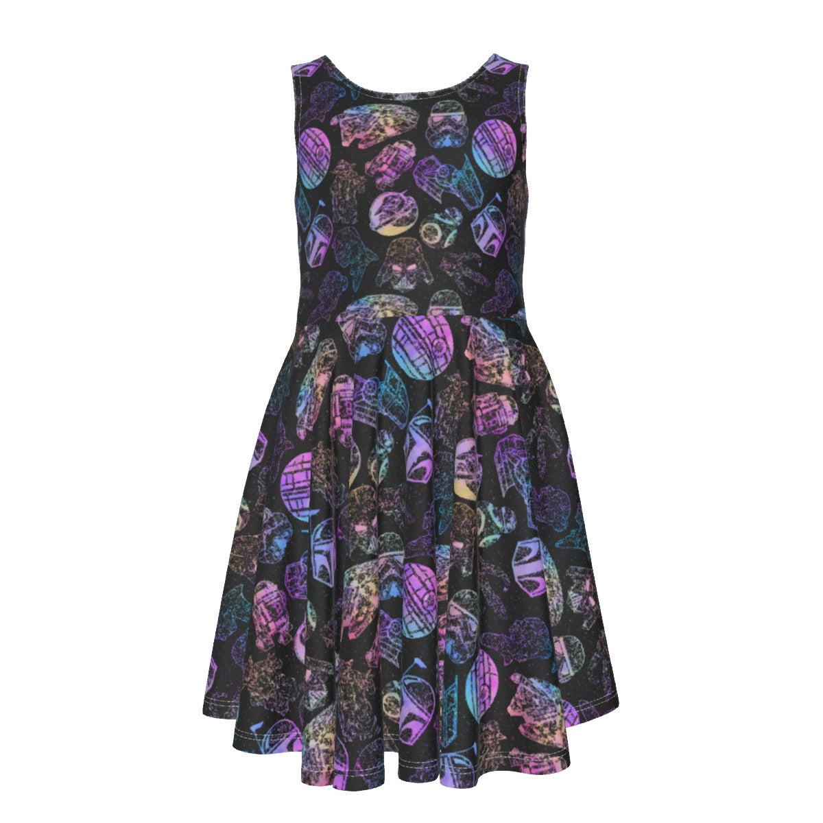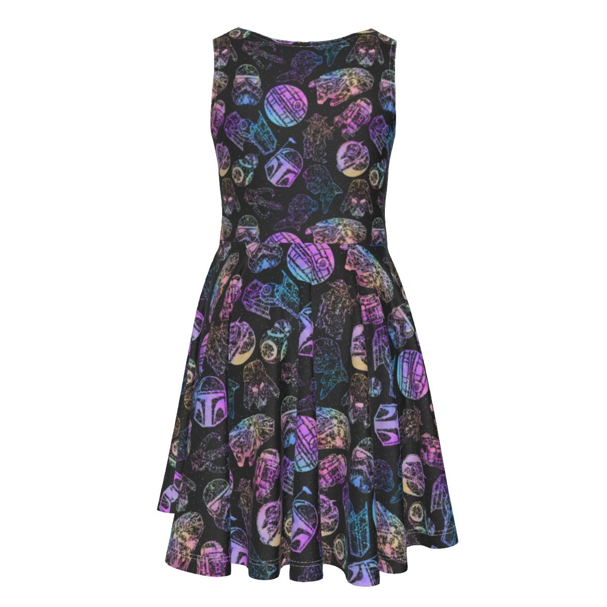 Watercolor Galactic Mandalas - Kid's Sleeveless Skater Dress