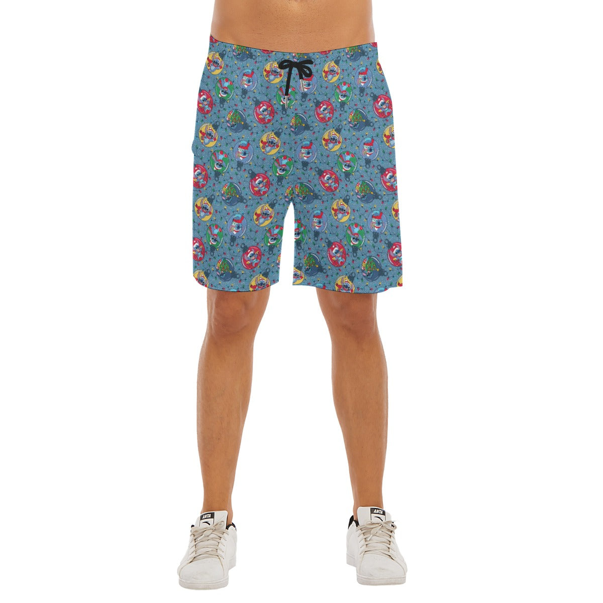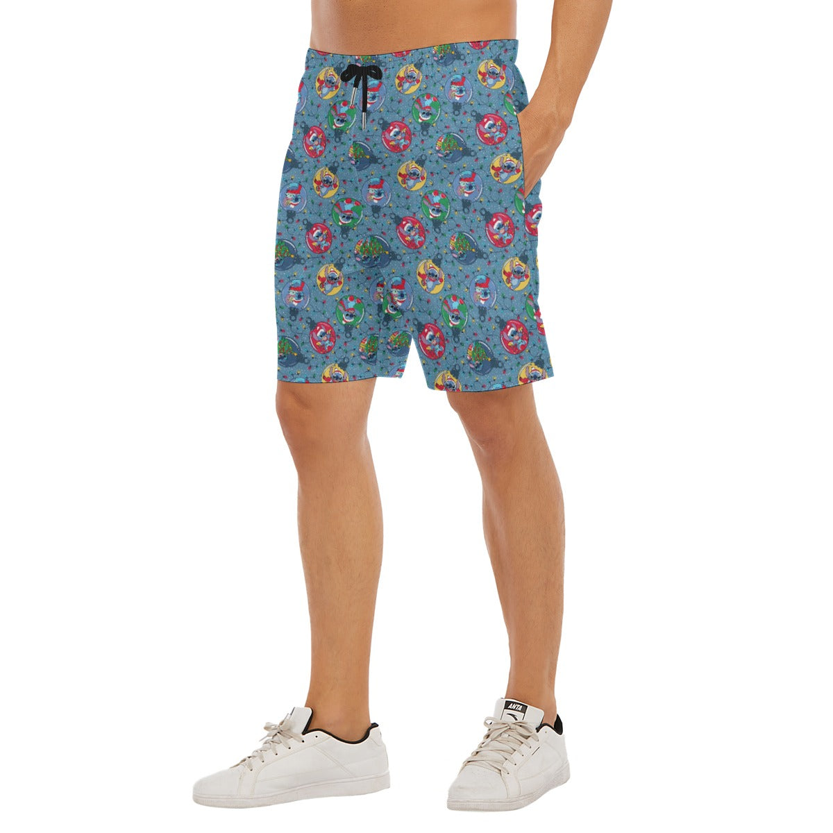 Holiday Baubles with Mischievous Blue Alien - Men’s Pocket Beach Shorts