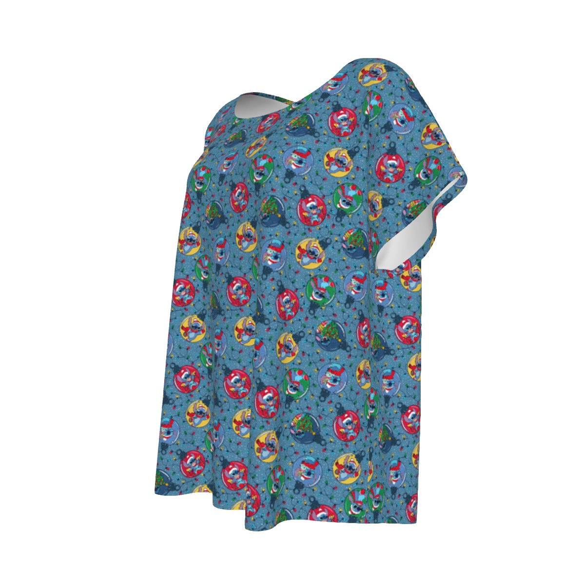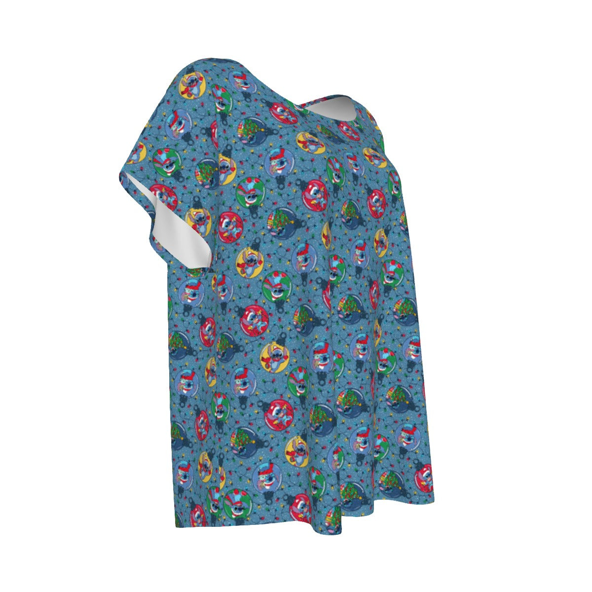 Celebrate the season with colorful holiday ornaments, each featuring a playful blue alien in festive moments—from wrapping gifts to wearing a Santa hat. Twinkling lights add sparkle to this joyful design, perfect for fans of lovable, mischievous creatures.