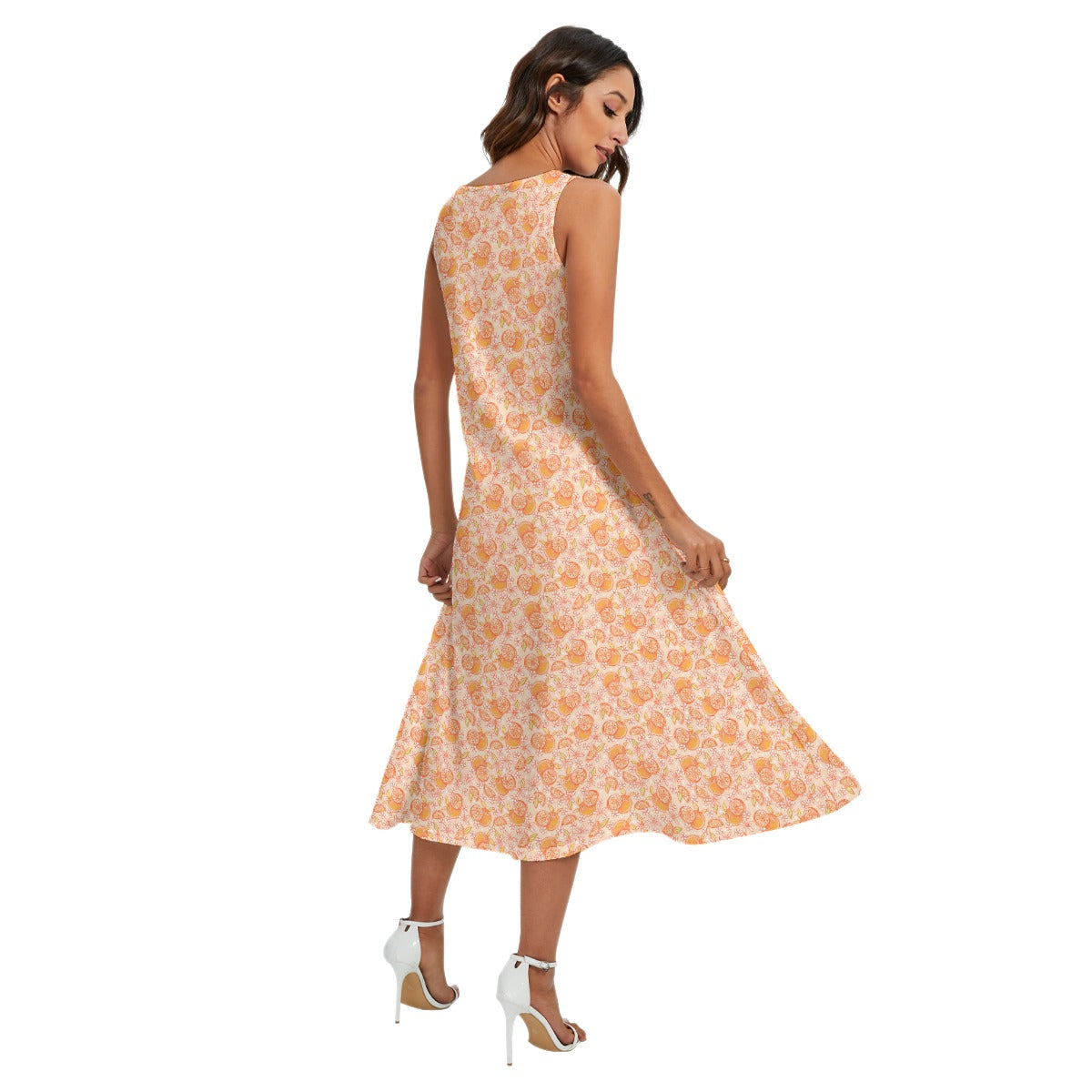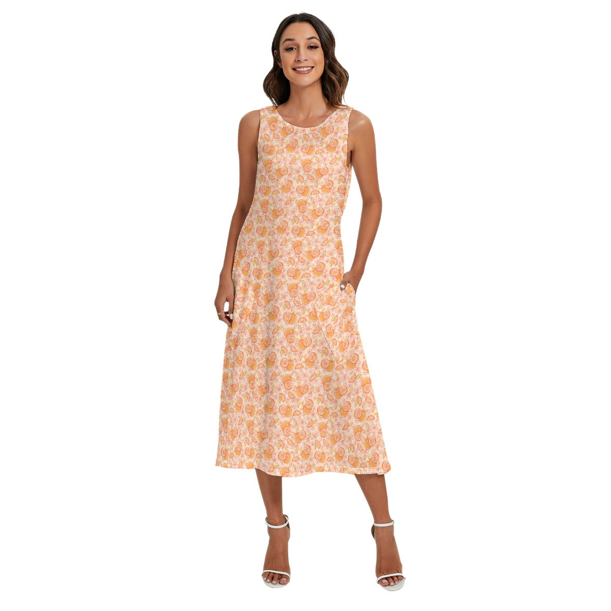 Summer Fruits - Oranges - Women’s Diagonal Pocket Midi Dress