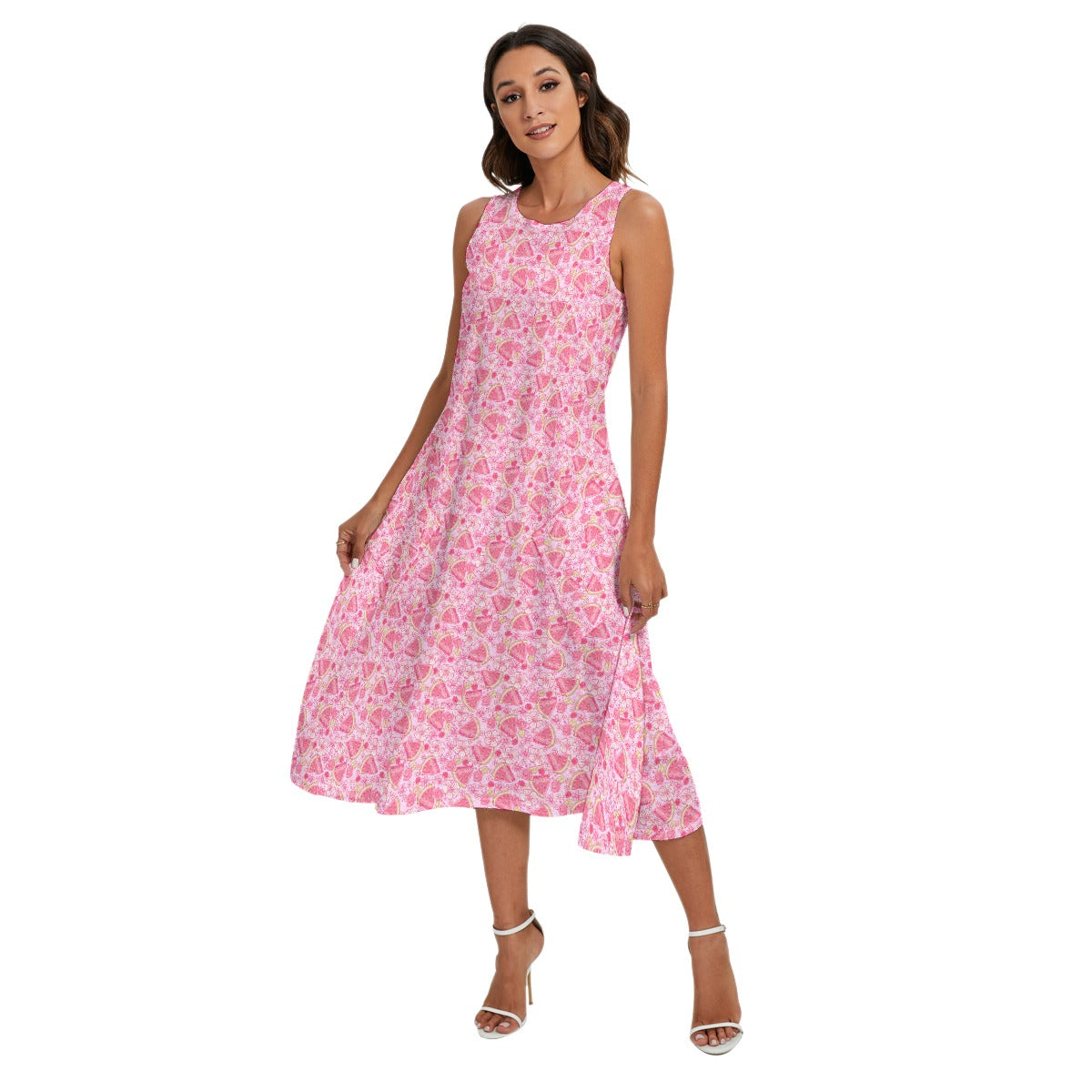 Summer Fruits - Watermelon - Women’s Diagonal Pocket Midi Dress
