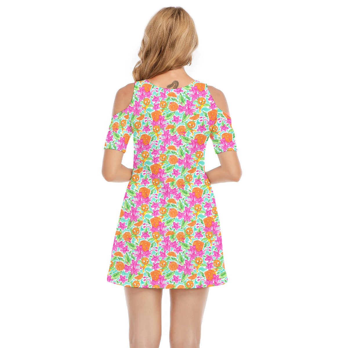 Tropical Citrus Bloom - Women's Cold Shoulder Cotton Dress