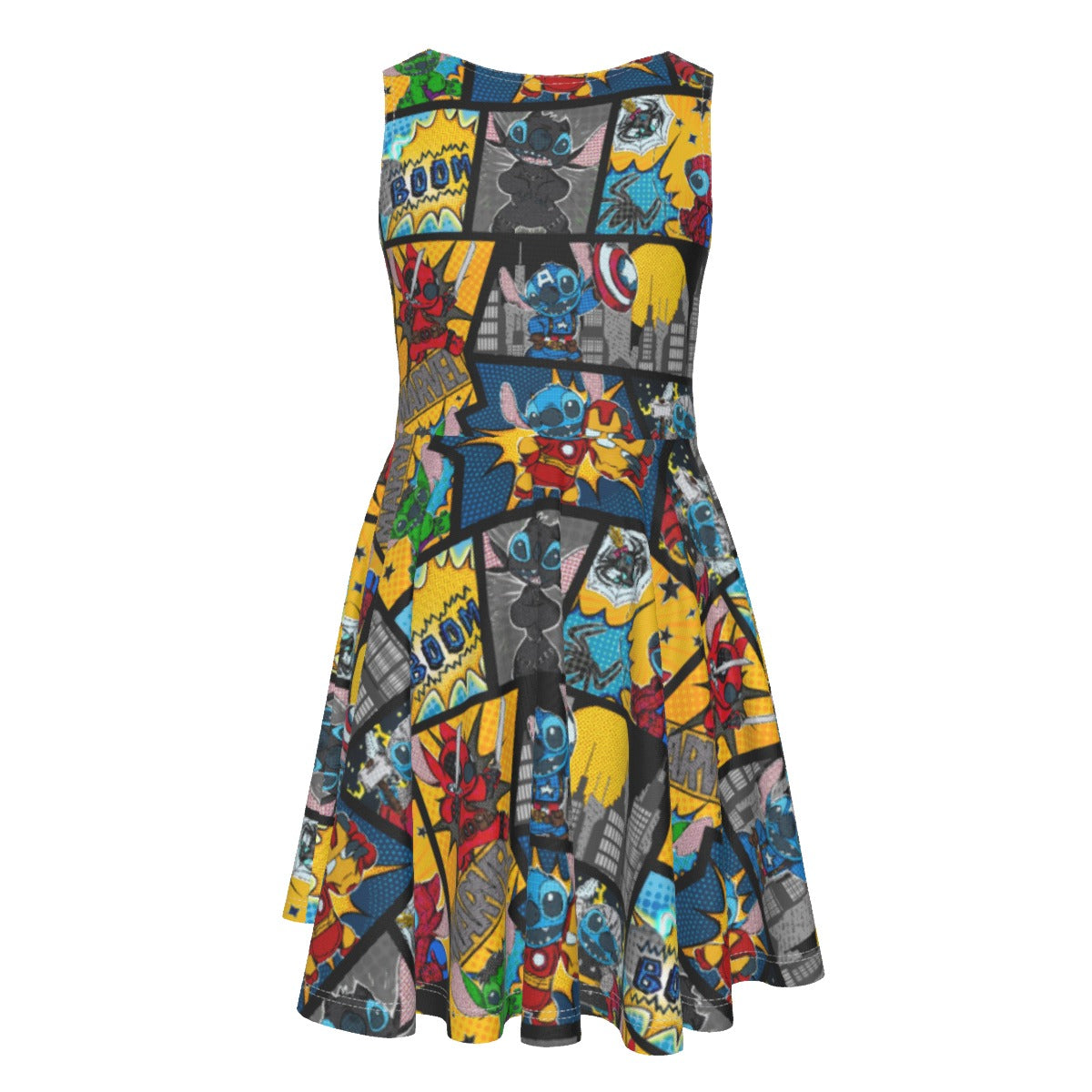 Superhero Stitch - Comic Action - Kid's Sleeveless Skater Dress