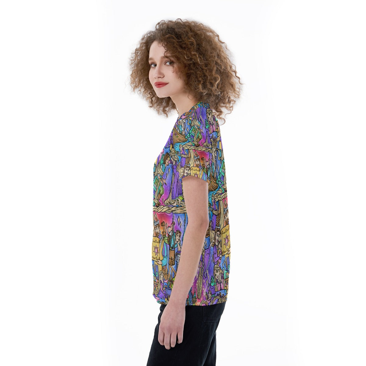 Golden Hair Storybook Scenes - Women's Short Sleeve V-Neck T-Shirt
