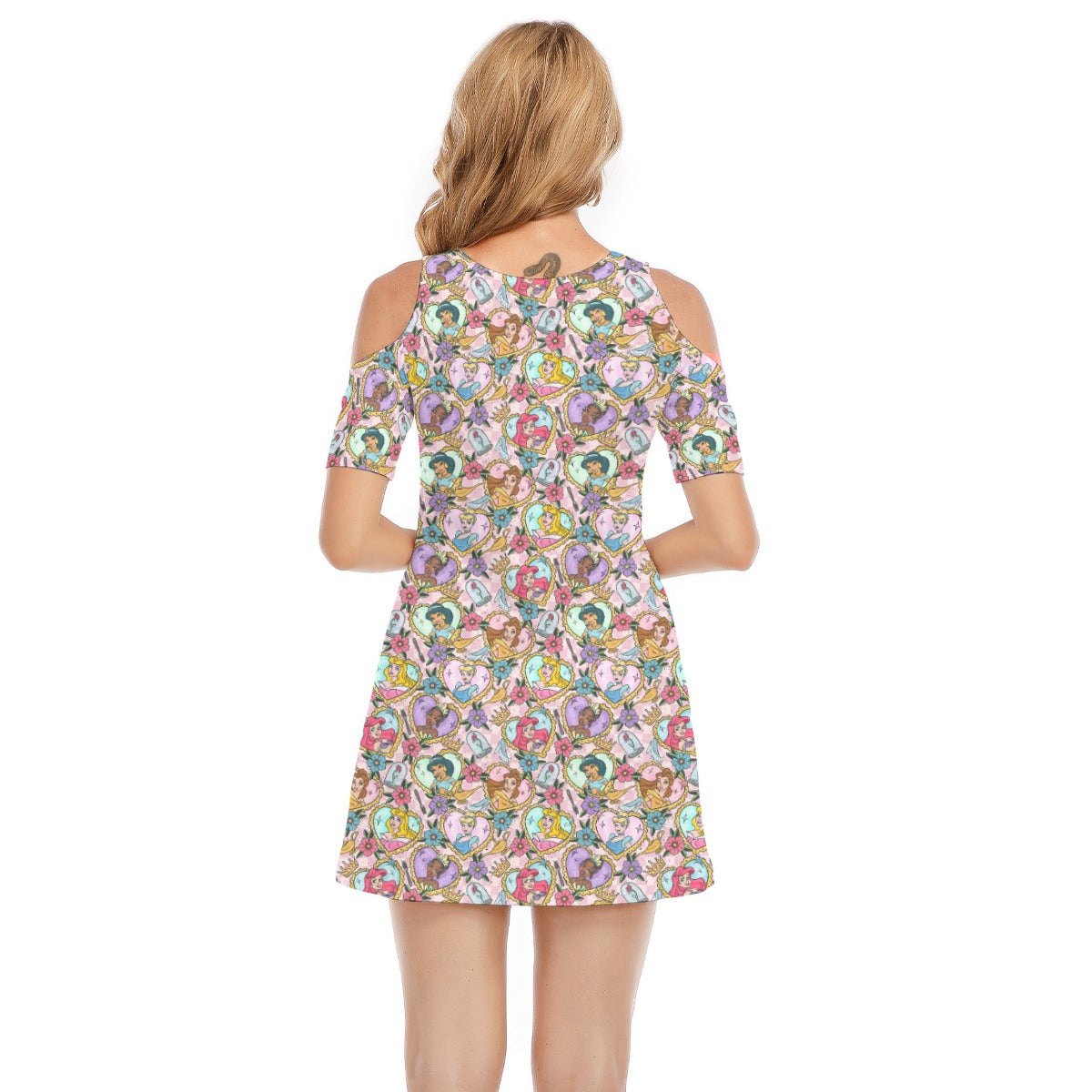 Tattoo Hearts Royal Icons - Women's Cold Shoulder Cotton Dress