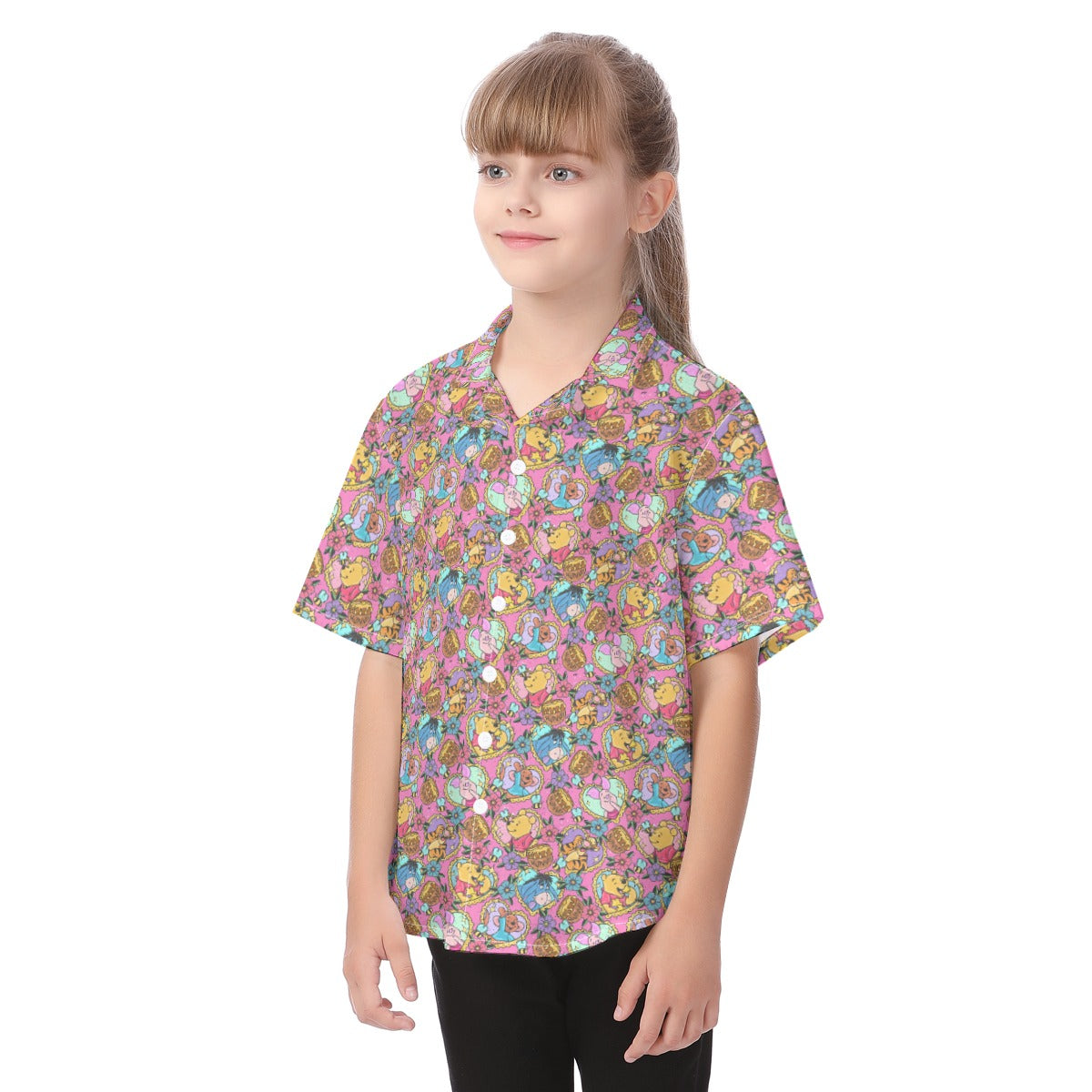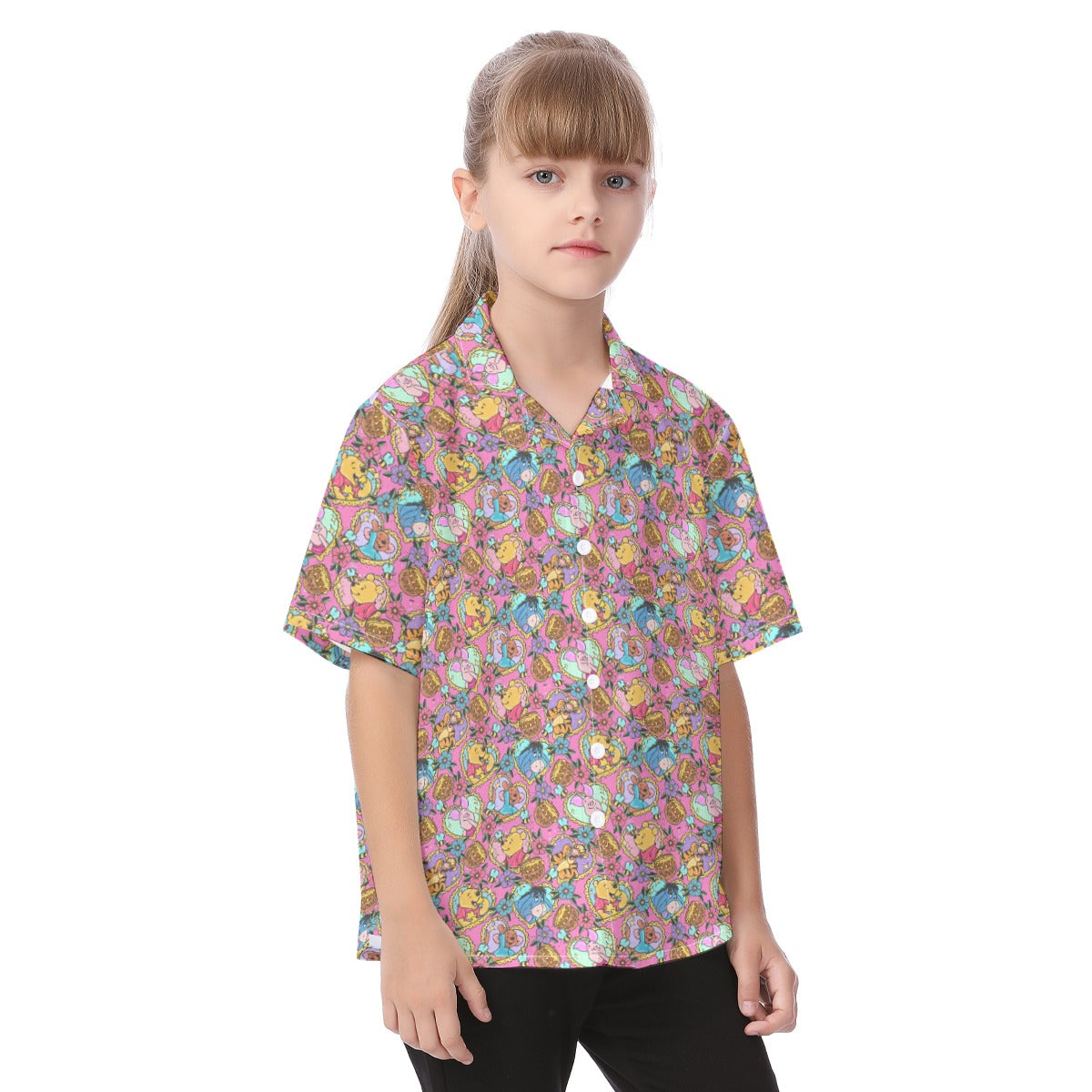 Tattoo Hearts Woodland Friendsends - Kid's Hawaiian Button Up Shirt
